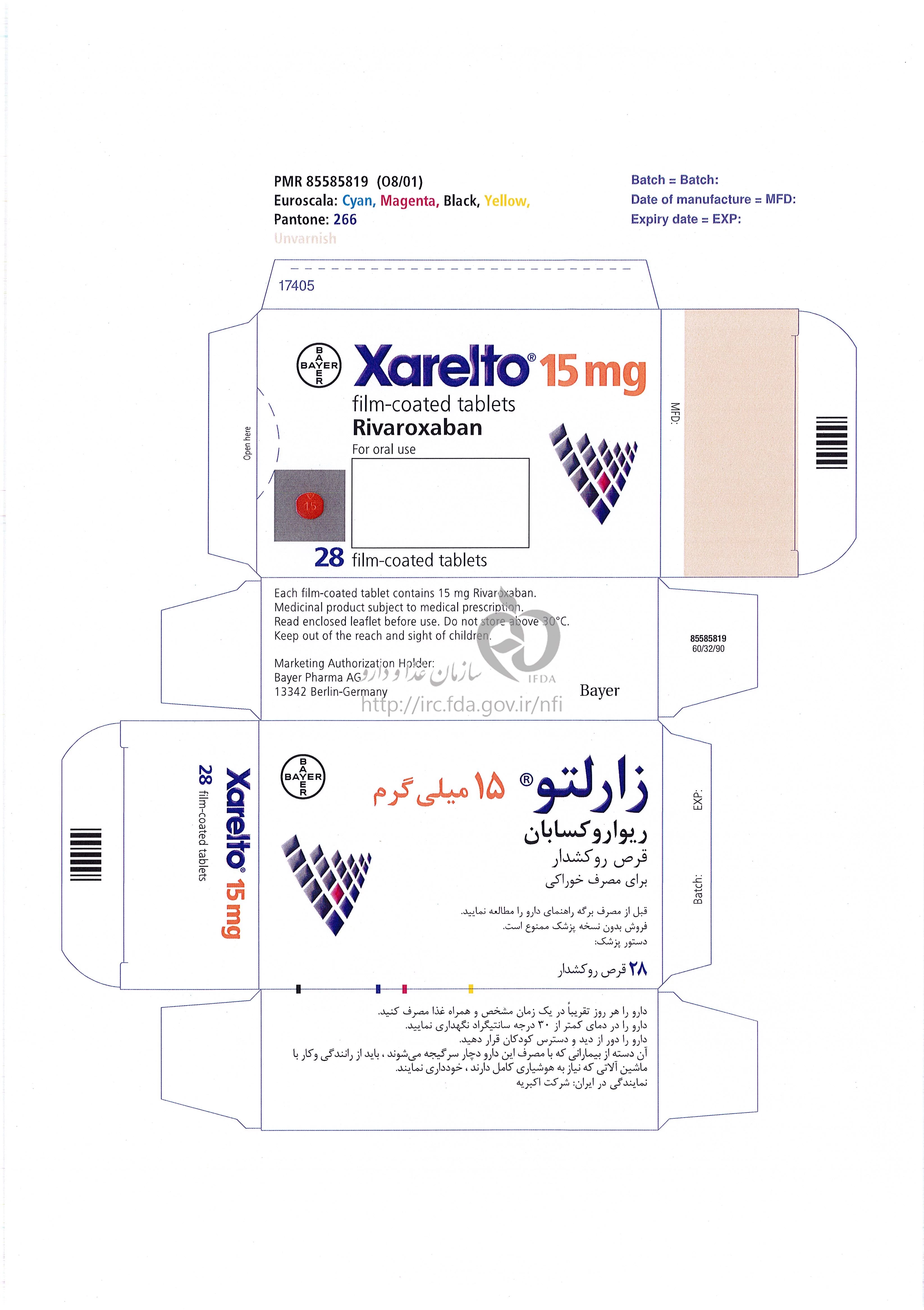 ریوراکسابان یک داروی ضدپلاکتی است که جلوگیری از ایجاد لخت خون در بدن را دارد. این دارو به طور عمده برای پیشگیری از تشکیل لخت خون در بیمارانی که در معرض خطر عفونت های قلبی عروقی یا سکته مغزی هستند استفاده می شود. همچنین این دارو برای درمان و پیشگیری از عود و شدت بیماری ورید دست و پا عمدتاً برای بیمارانی که پس از جراحی و یا بیماری های پوستی بیماری ورید ظاهر می شوند، نیز به کار می رود. نحوه مصرف این دارو به دستور پزشک و با توجه به روش تجویز شده قرص در دهان می باشد و همیشه به همان ساعت شبانه روز استفاده شود. در خصوص نحوه مصرف دقیق دارو بهتر است با پزشک خود صحبت کنید.
