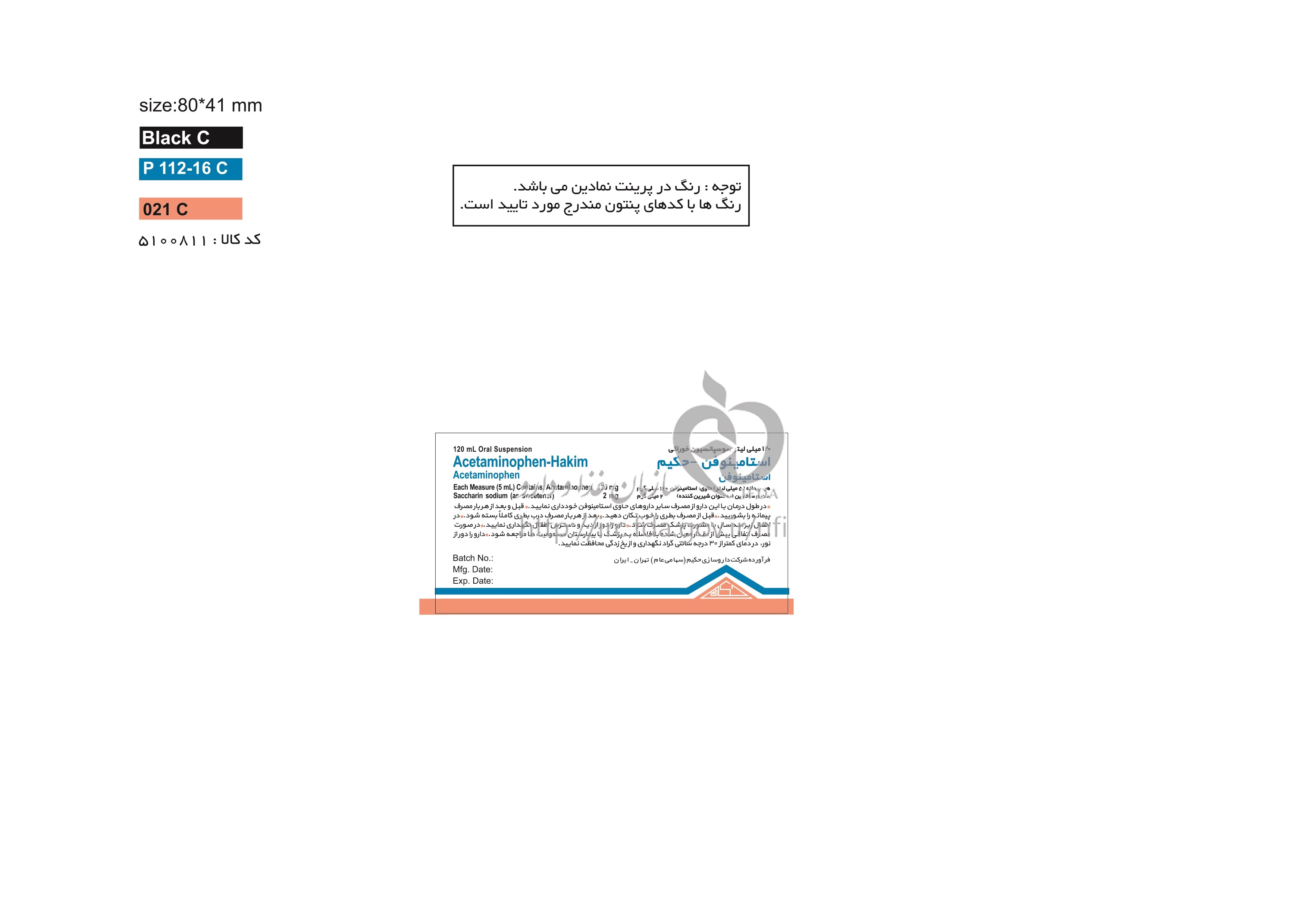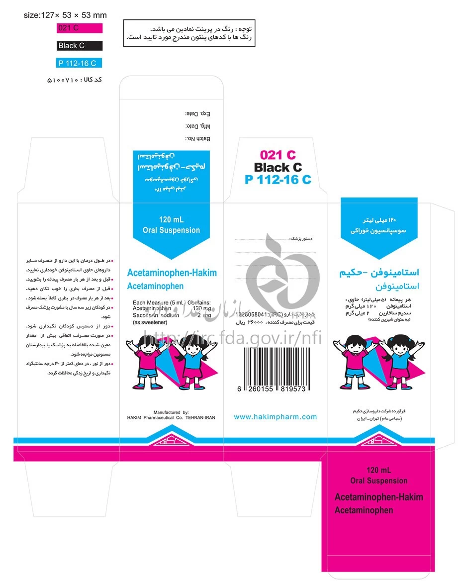 استامینوفن - حکیم سوسپانسیون خوراکی 120 mg/5mL 120MILLILITER