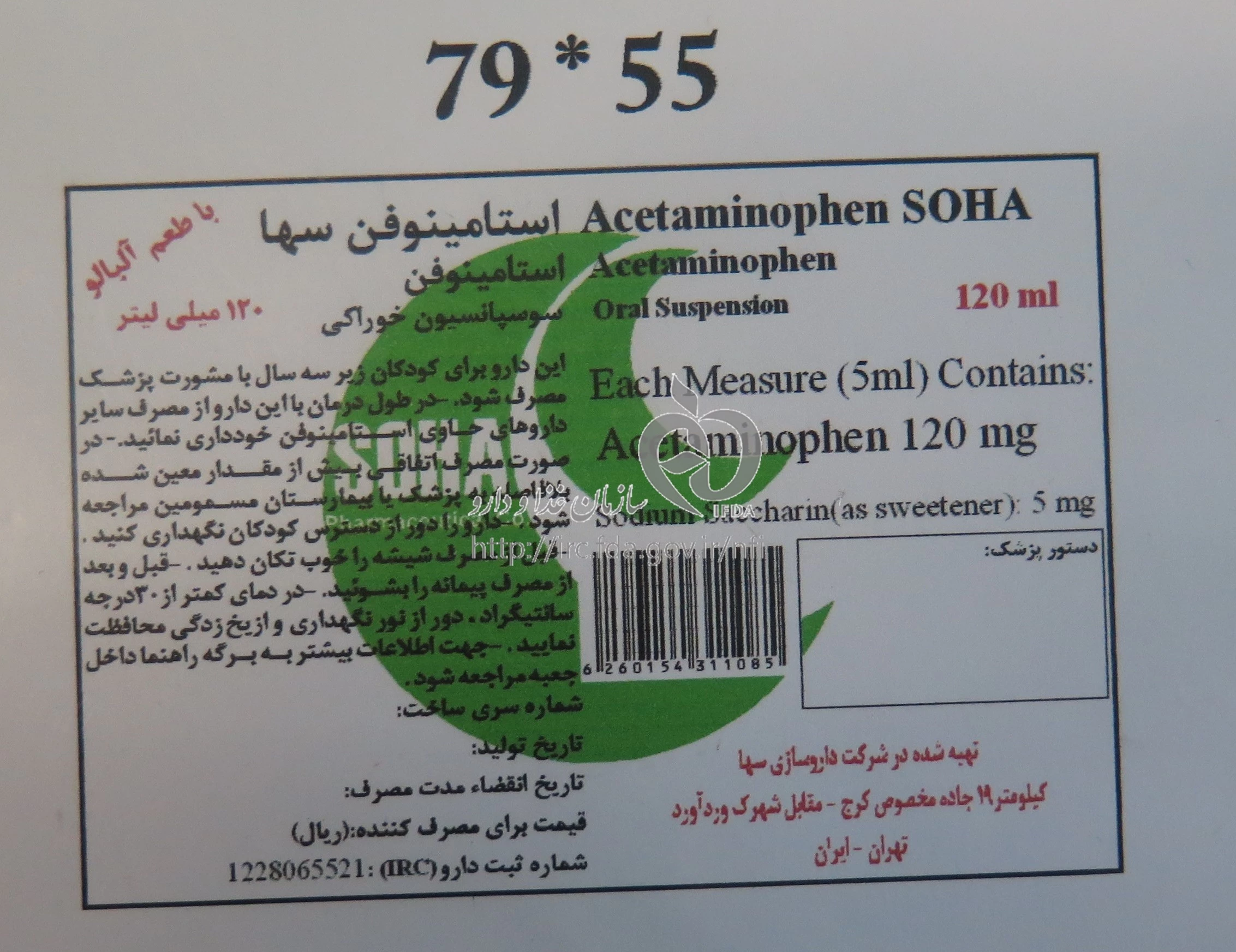 استامینوفن سها سوسپانسیون خوراکی 120 mg/5mL 120MILLILITER