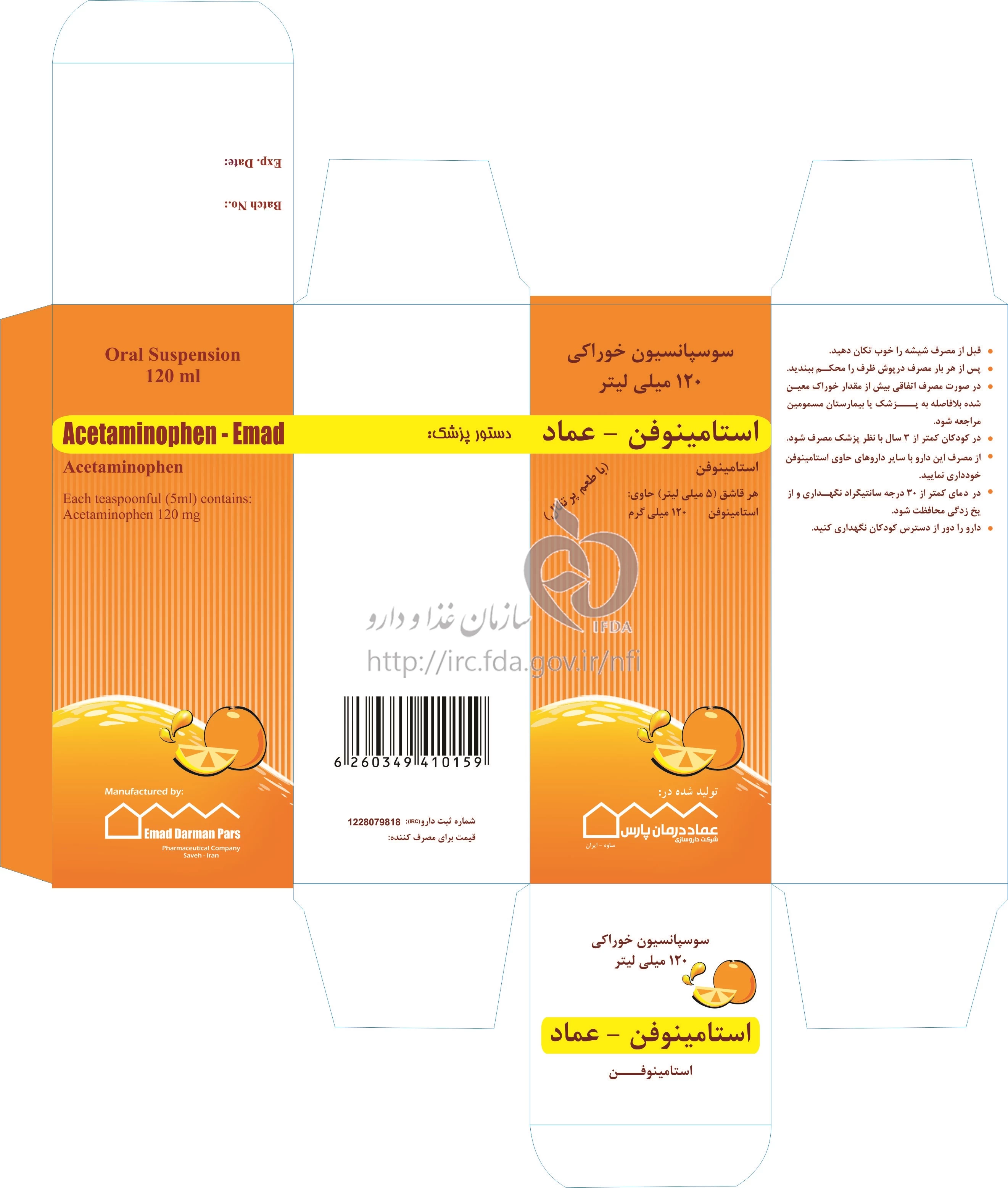 استامینوفن - عماد سوسپانسیون خوراکی 120 mg/5mL 120MILLILITER