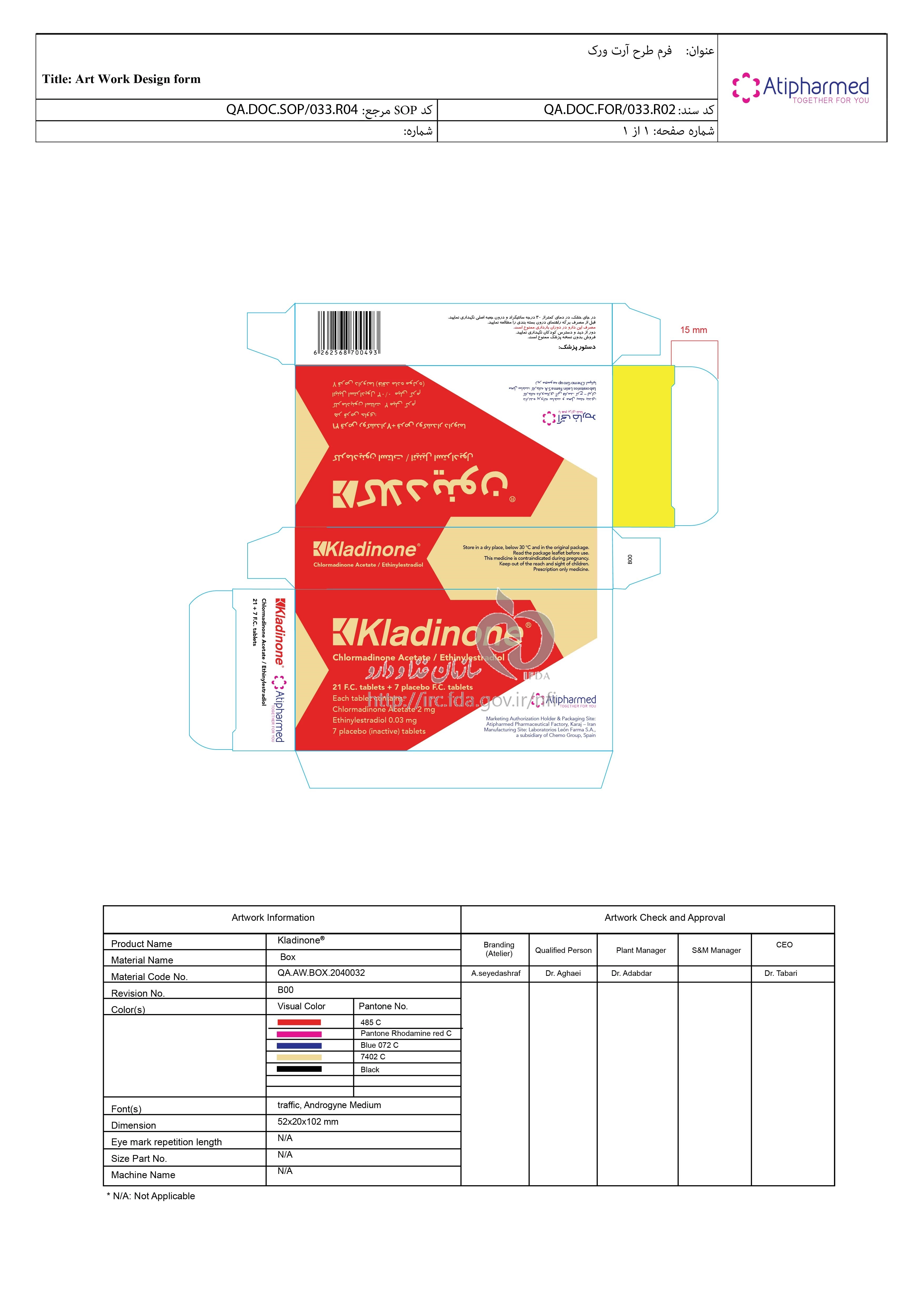 توصيات مقترحة کلادینون قرص خوراکی 2 mg/0.03 mg