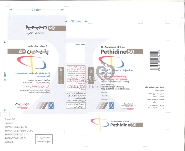 الأطباء پتیدین تزریقی پرنترال 50 mg/1mL 1MILLILITER