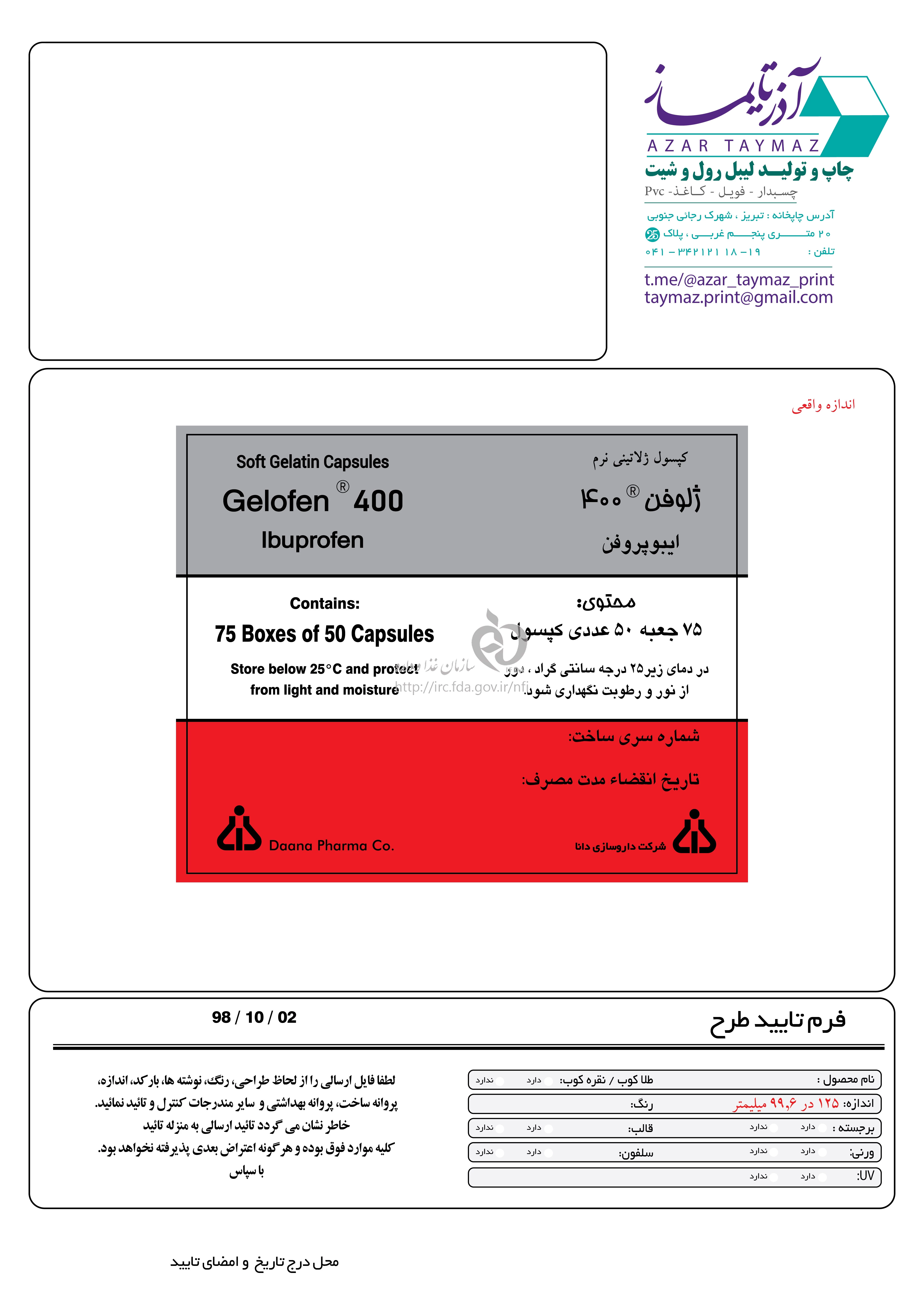 الأطباء ژلوفن کپسول حاوی مایع خوراکی 400 mg