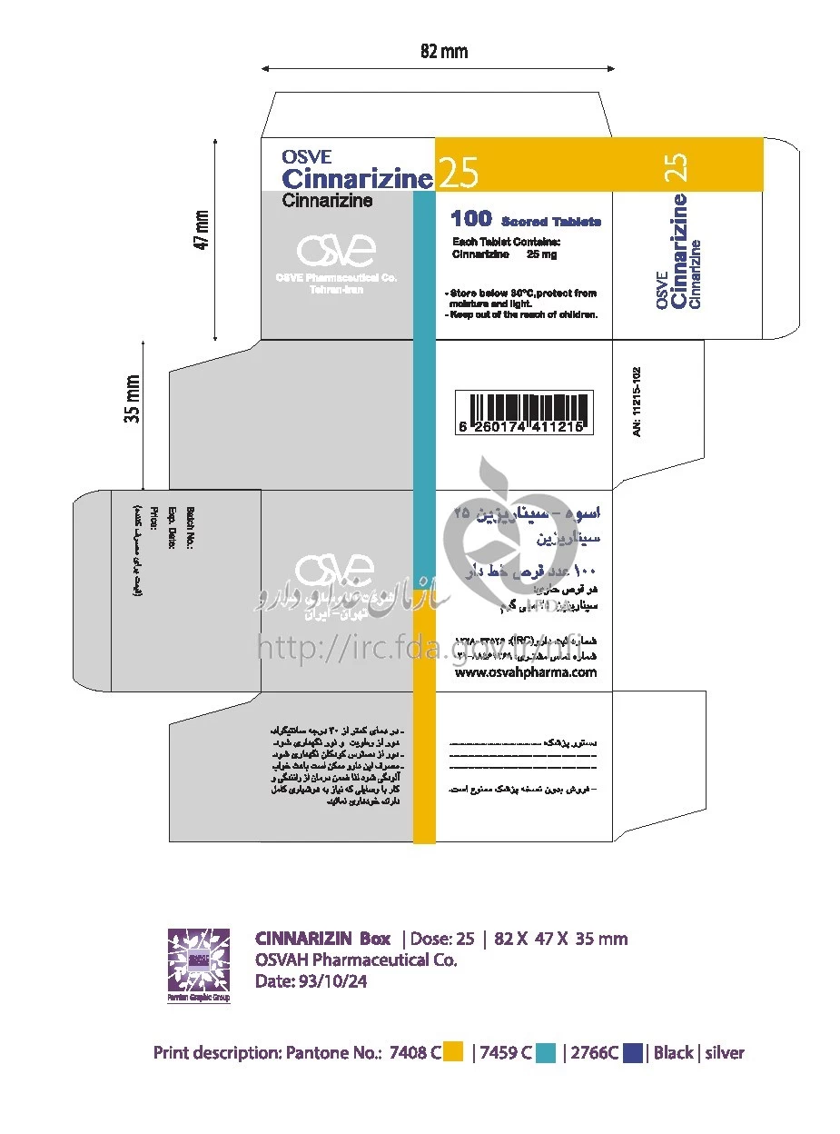 اسوه - سیناریزین قرص خوراکی 25 mg