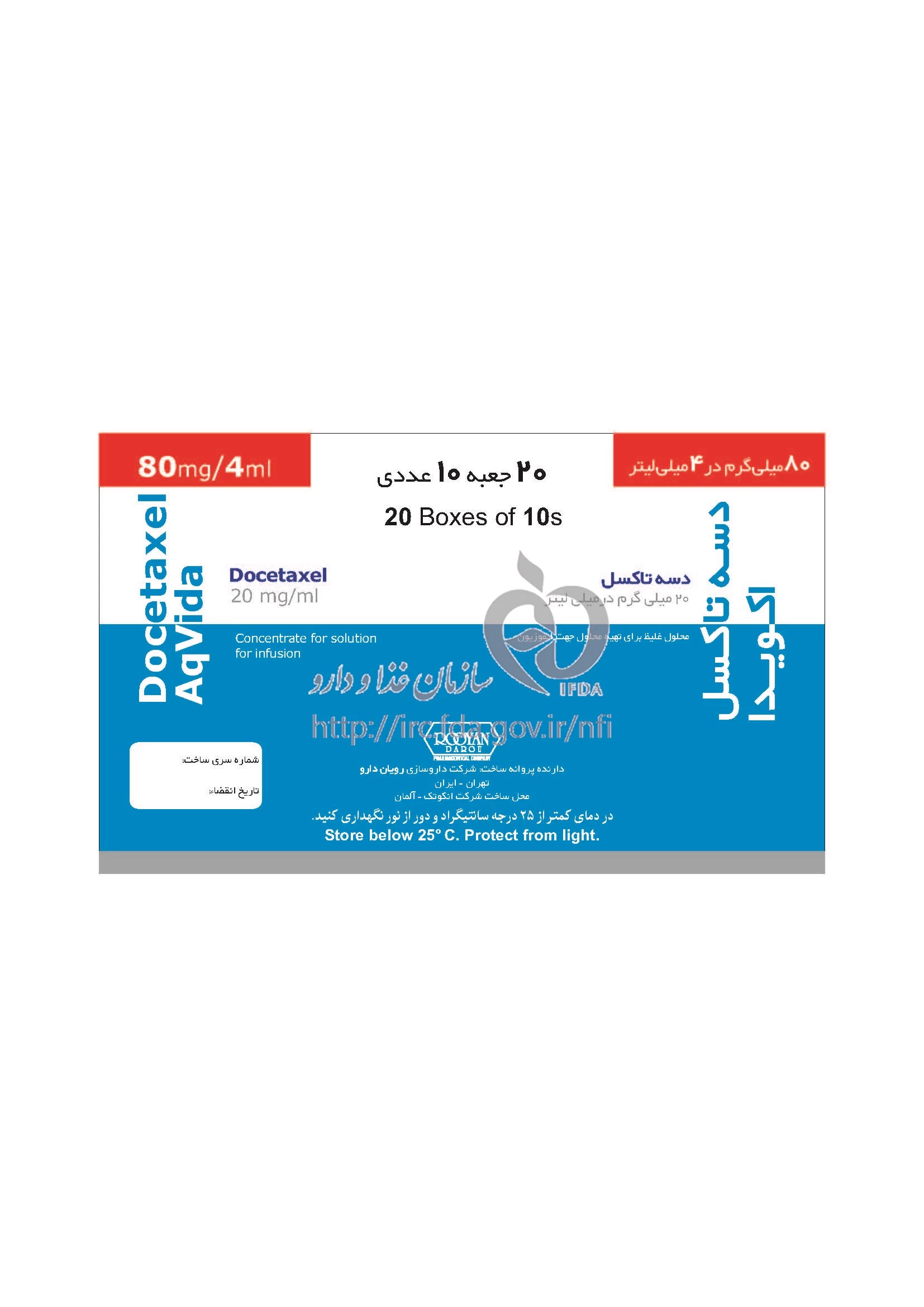 دسه تاکسل آکویدا محلول تزریقی داخل وریدی 20 mg/1mL 4MILLILITER