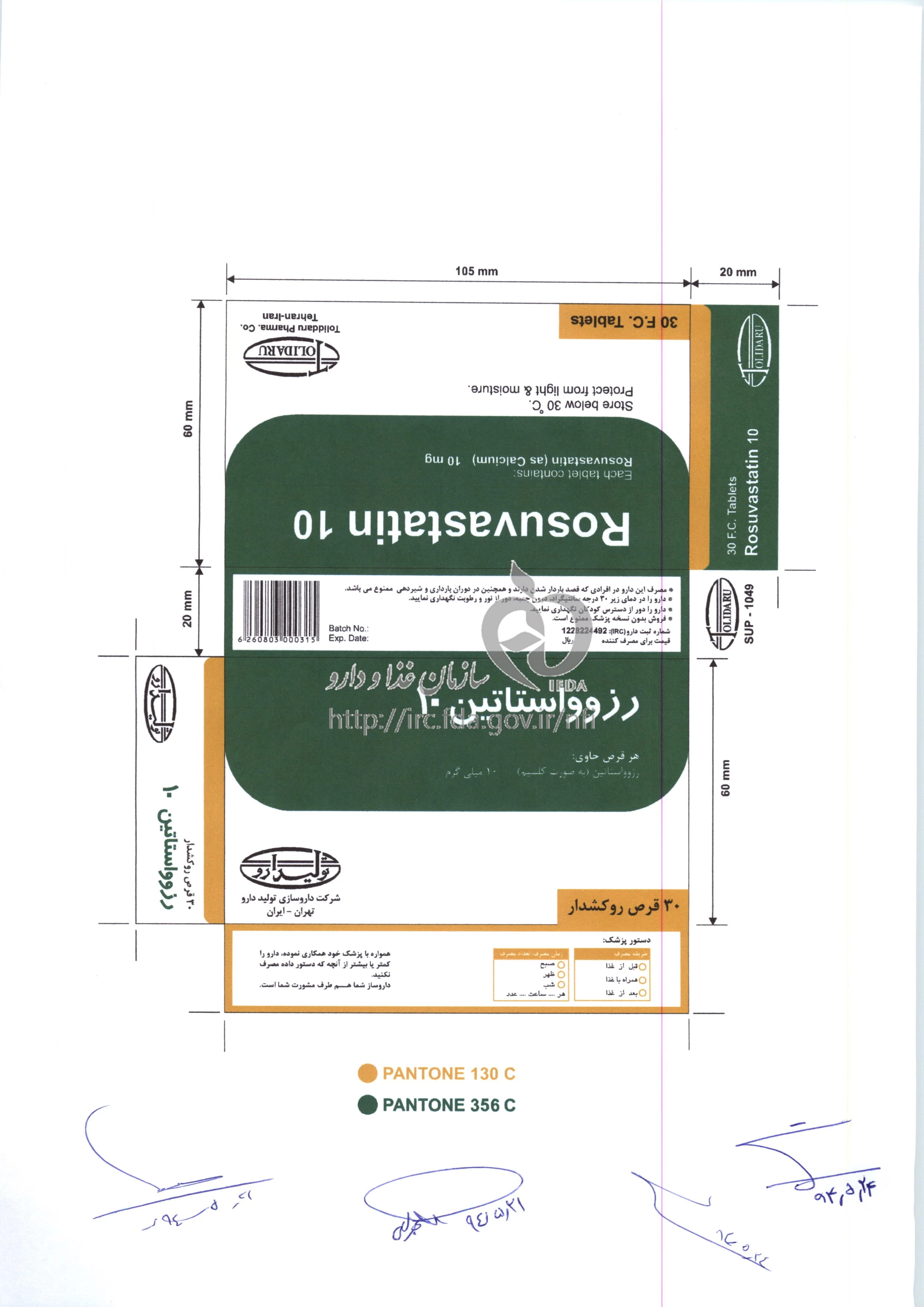 توصيات مقترحة رزوواستاتين قرص خوراکی 10 mg