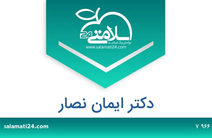 الدكتور ایمان نصار يقبل المرضى الجدد من . يمكنك الحصول على معلومات أكثر تفصيلاً من خلال الرجوع إلى ملف التعريف الدكتور ایمان نصار في صلاح 24.