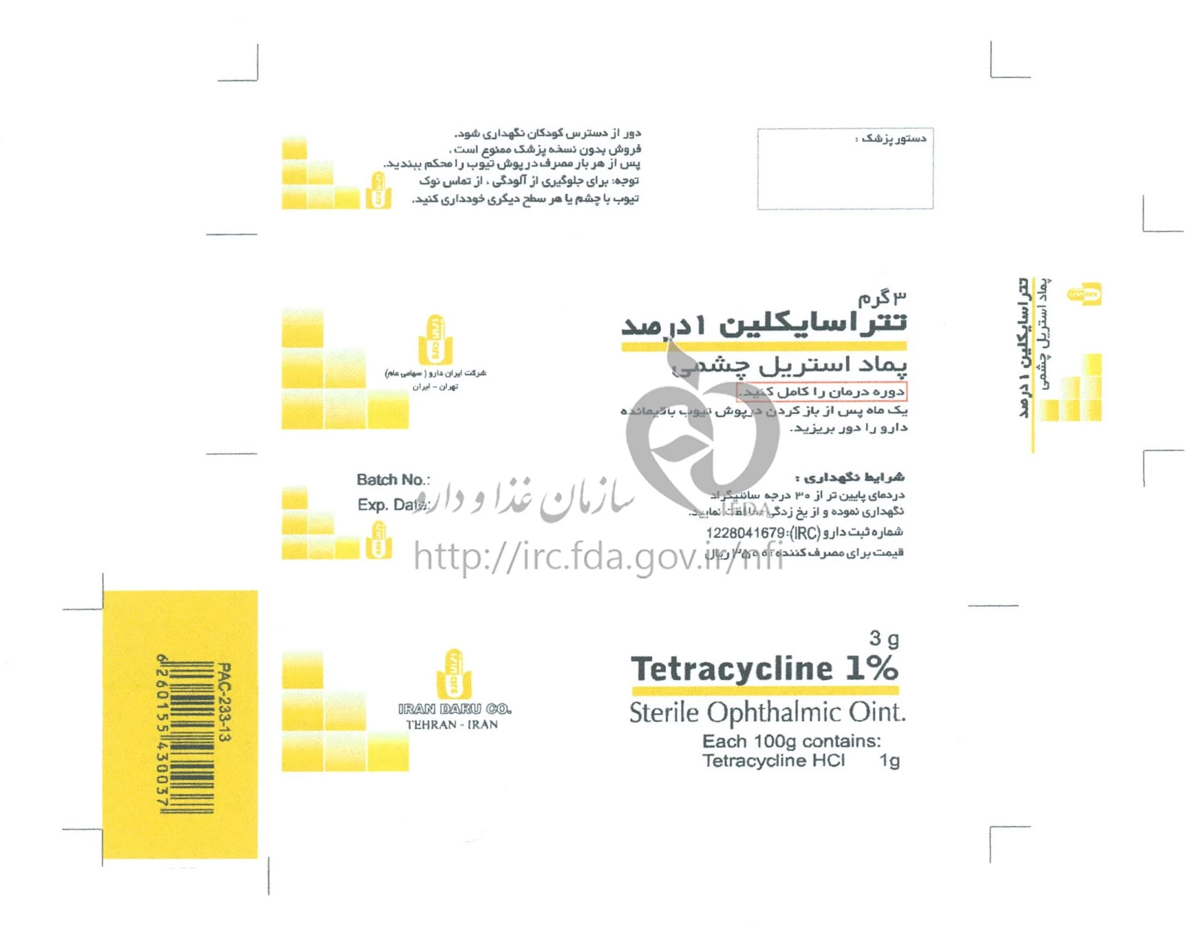 دکترها تتراسایکلین - ایران دارو پماد چشمی 1 % 3GRAM