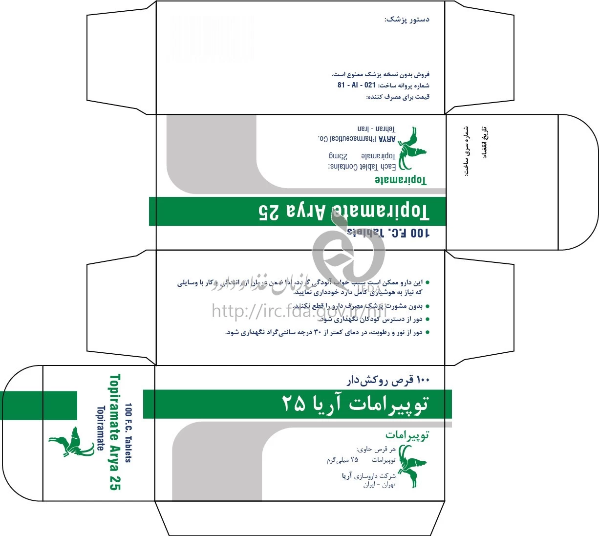 لیست ویدیو ها توپیرامات آریا قرص خوراکی 25 mg