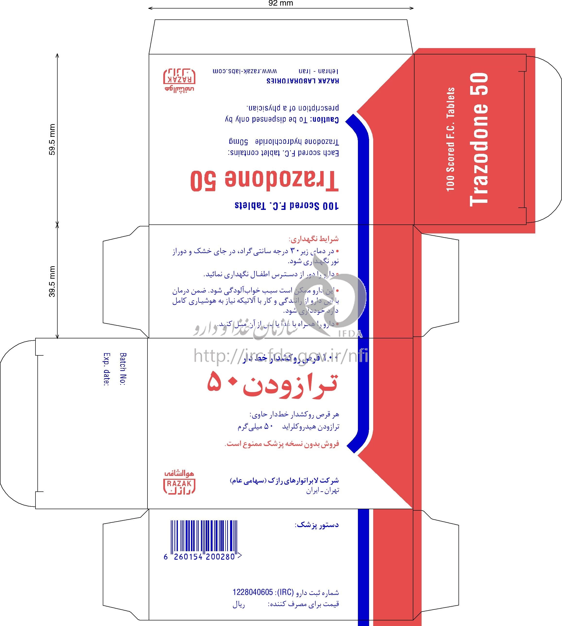 ترازودون قرص خوراکی 50 mg