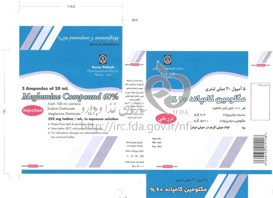 موارد مصرف مگلومین کامپاند تزریقی پرنترال 52.1 %/7.9 % 20MILLILITER