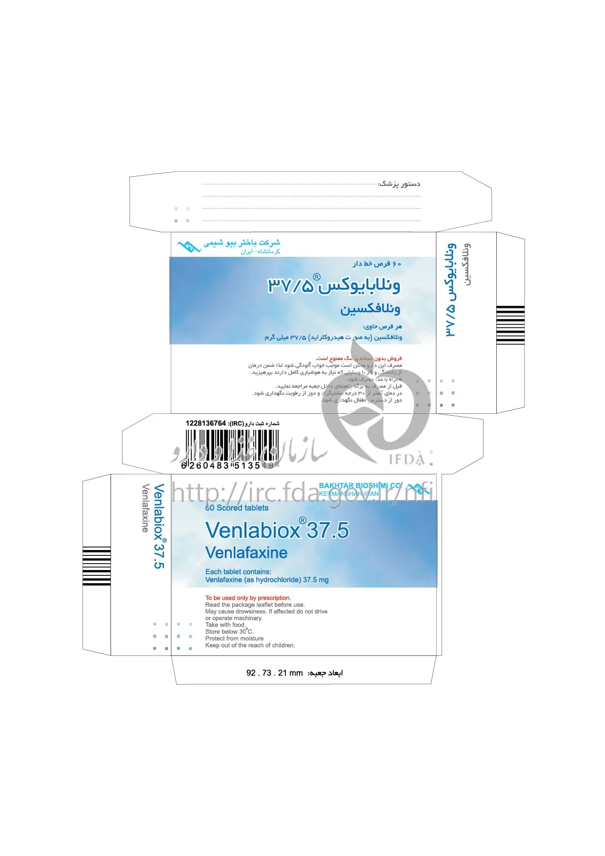 دکترها ونلابایوکس قرص خوراکی 37.5 mg