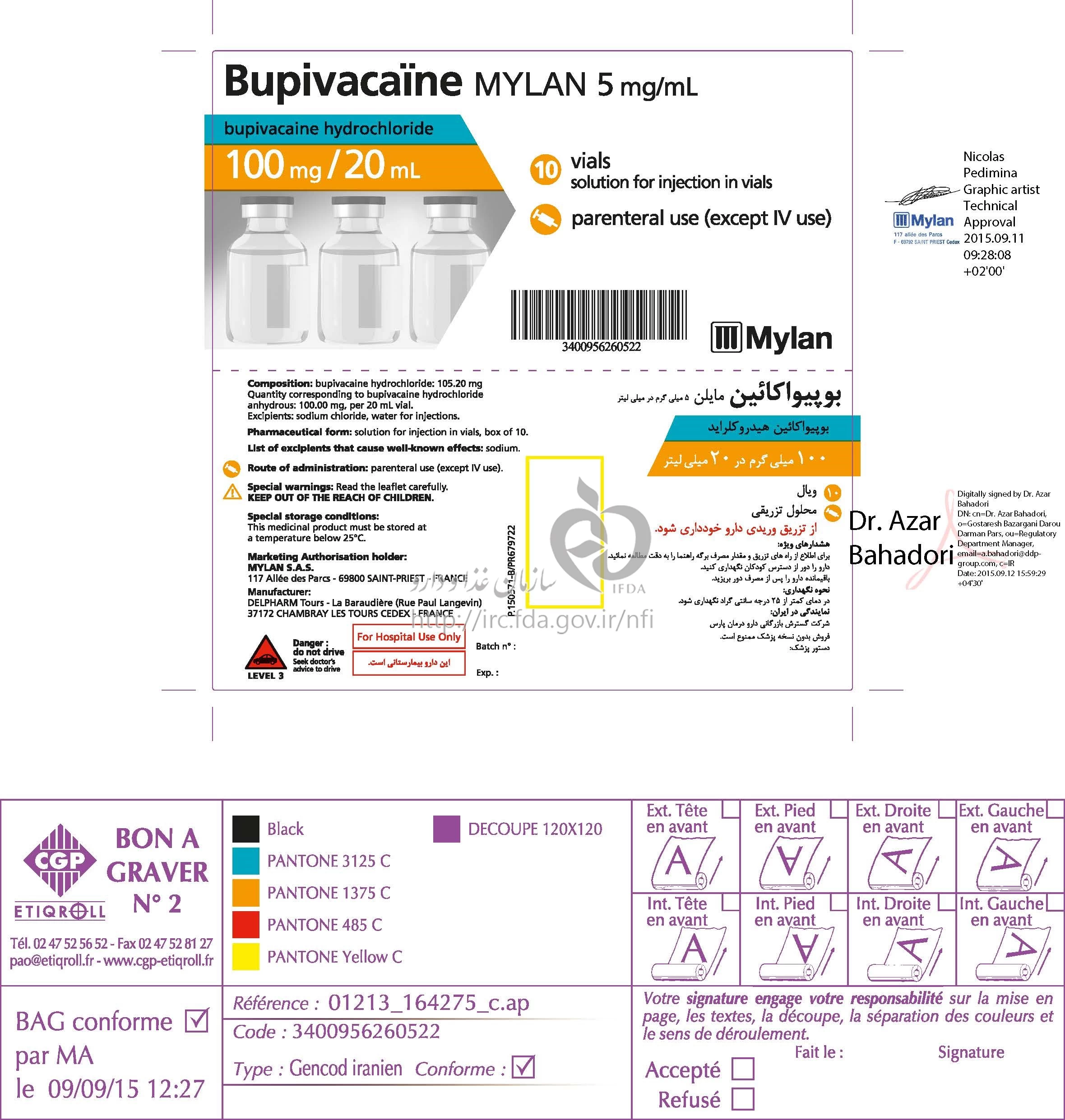بوپیواکائین مایلن تزریقی پرنترال 0.5 % 20MILLILITER