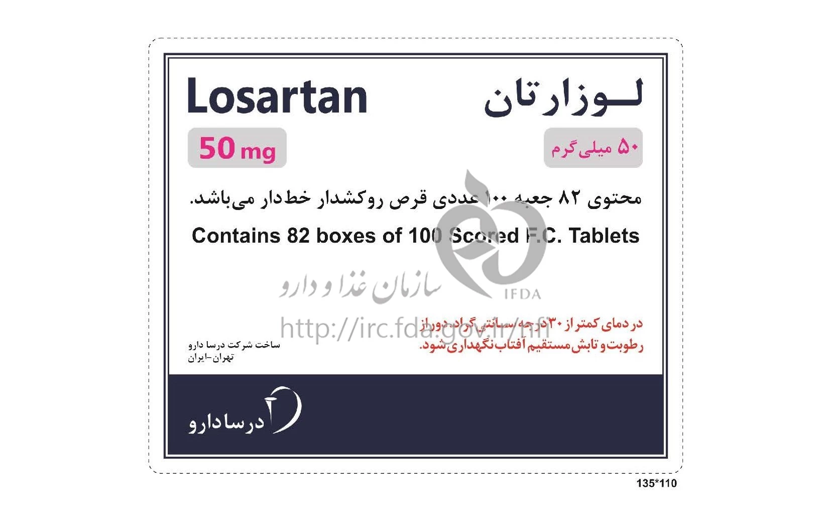 داروی LOSARTAN POTASSIUM TABLET ORAL 50 mg برای درمان فشار خون بالا و همچنین پیشگیری از سکته قلبی از طریق کاهش فشار خون استفاده می‌شود. نحوه مصرف این دارو به دستور پزشک است و باید همیشه به دستور پزشک مصرف شود. معمولاً روزانه یک عدد قرص LOSARTAN POTASSIUM TABLET ORAL 50 mg با یک لیوان آب در هر زمانی که پزشک مشخص کند می‌تواند مصرف شود. همچنین، با توجه به وضعیت بیمار، پزشک ممکن است دوز این دارو را تغییر دهد. همچنین نکاتی که در مورد این دارو باید در نظر گرفت عبارتند از: - با معده خالی یا با غذا قبل از مصرف داروها، زیادی طعم نمی‌کند. - نکات مصرف و الزامات در دوره‌های درمانی باید به صورت کامل در دارونامه مشخص شده باشد. - سیستم قلبی و عروقی باید مداوم کنترل شود. - برای تائید نتایج درمان با این دارو، ضرورتاً از طریق آزمایش تعیین فشار خون انجام داده می‌شود. قبل از شروع درمان با این دارو، بهتر است که نکات و موانع مصرف را با پزشک خود در میان بگذارید.