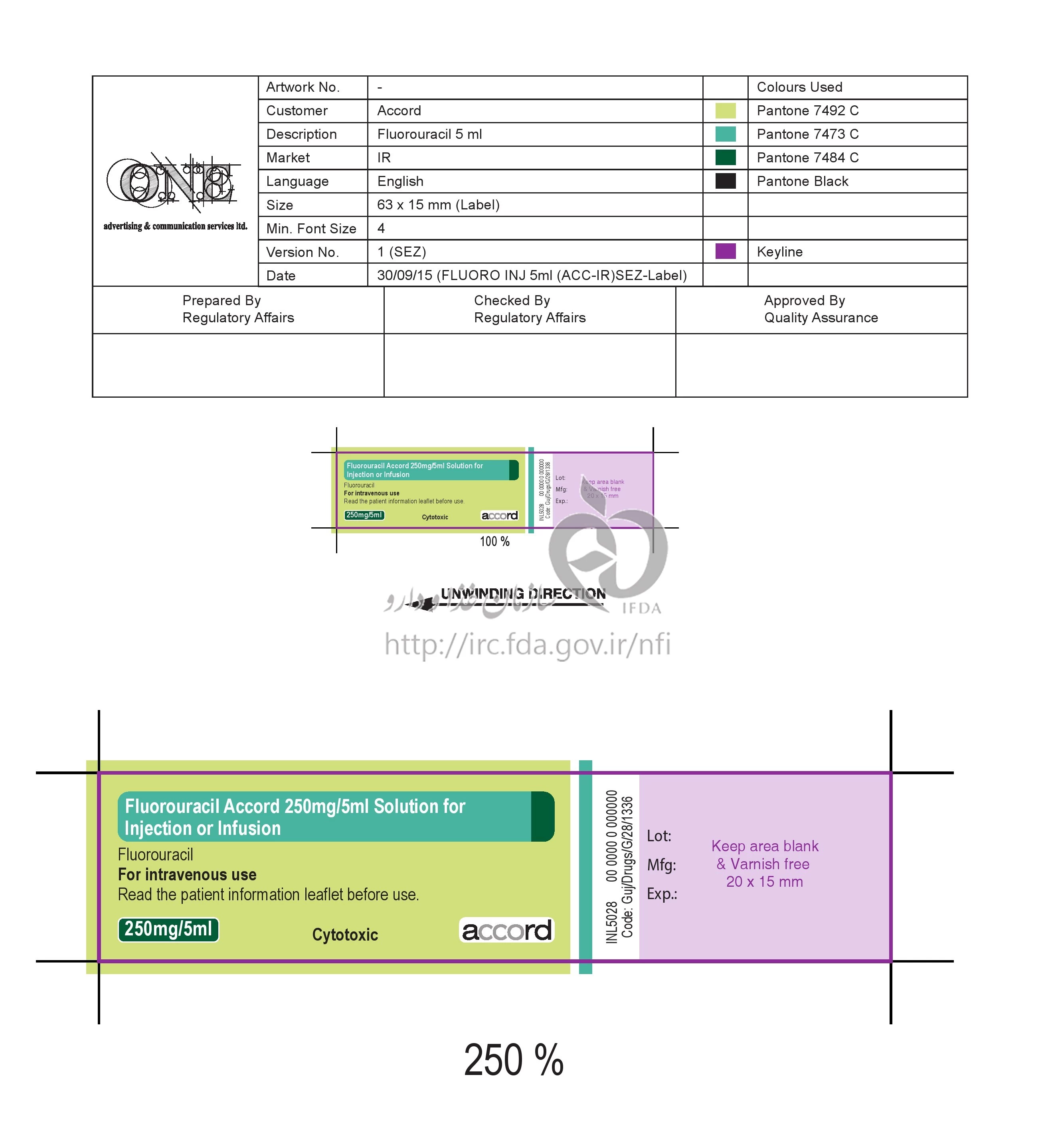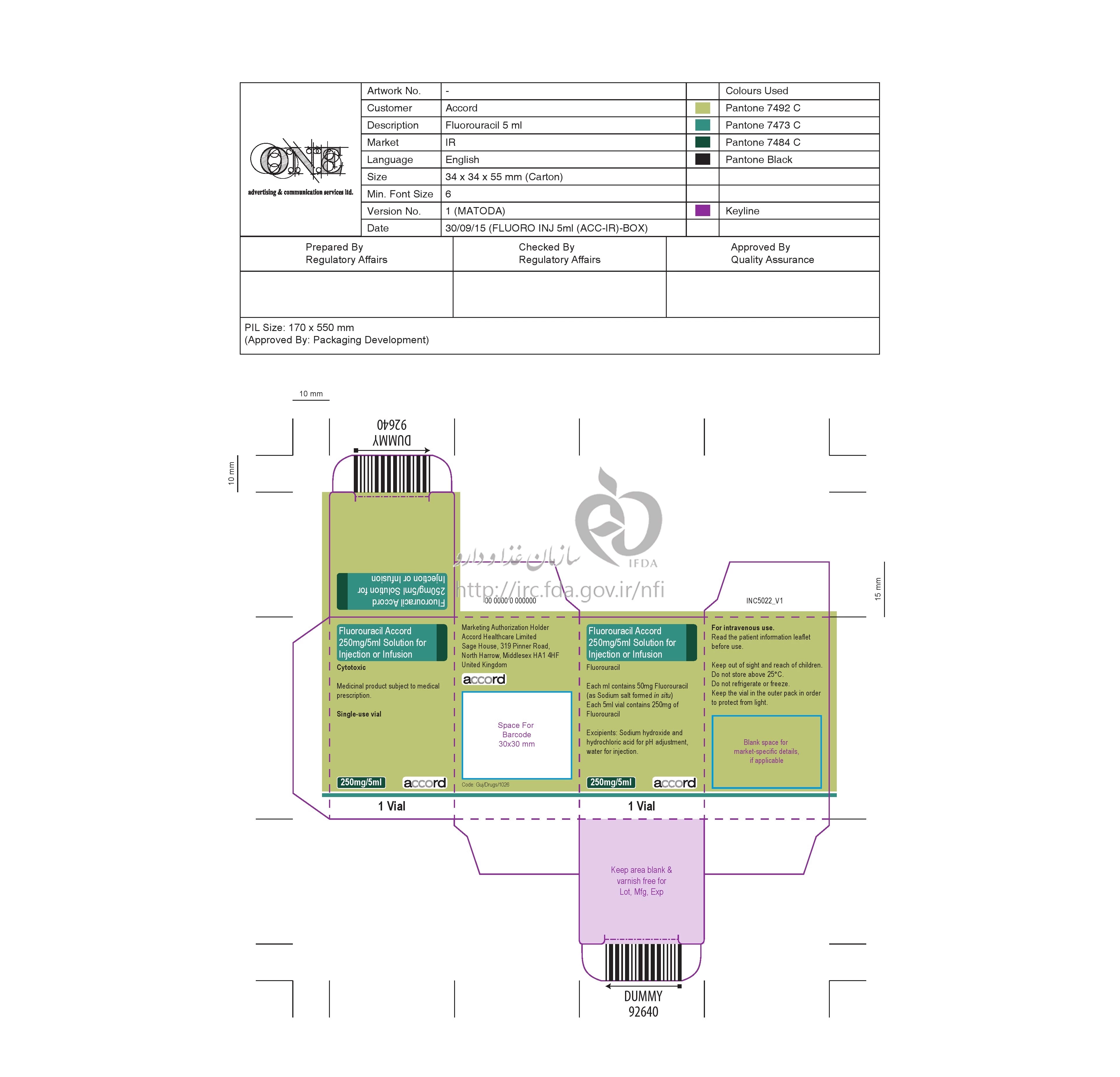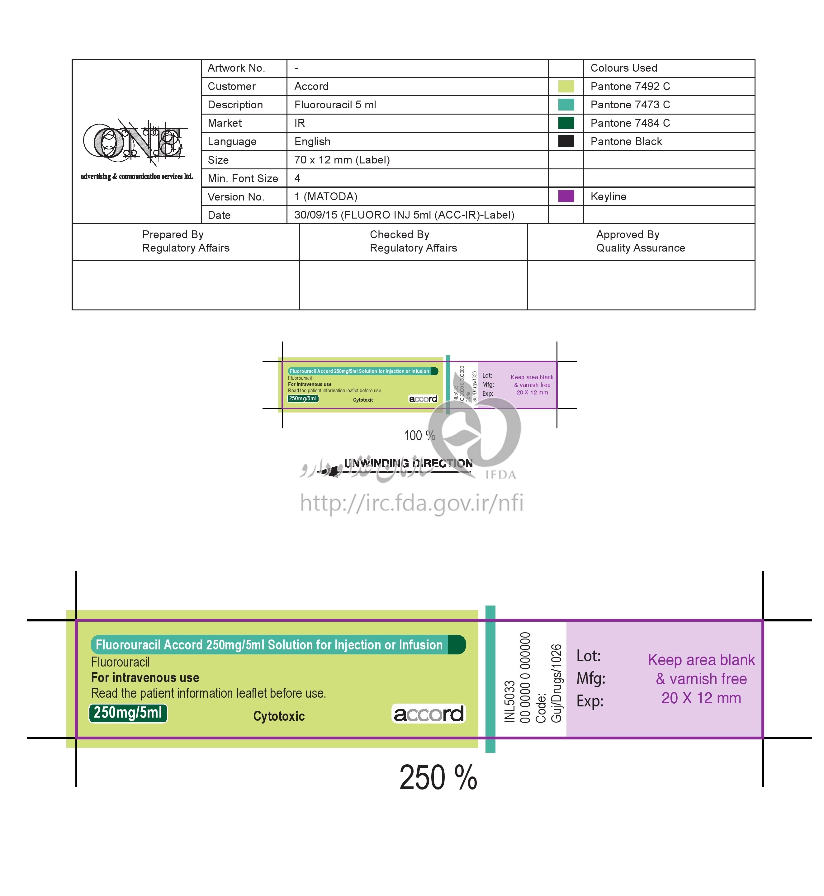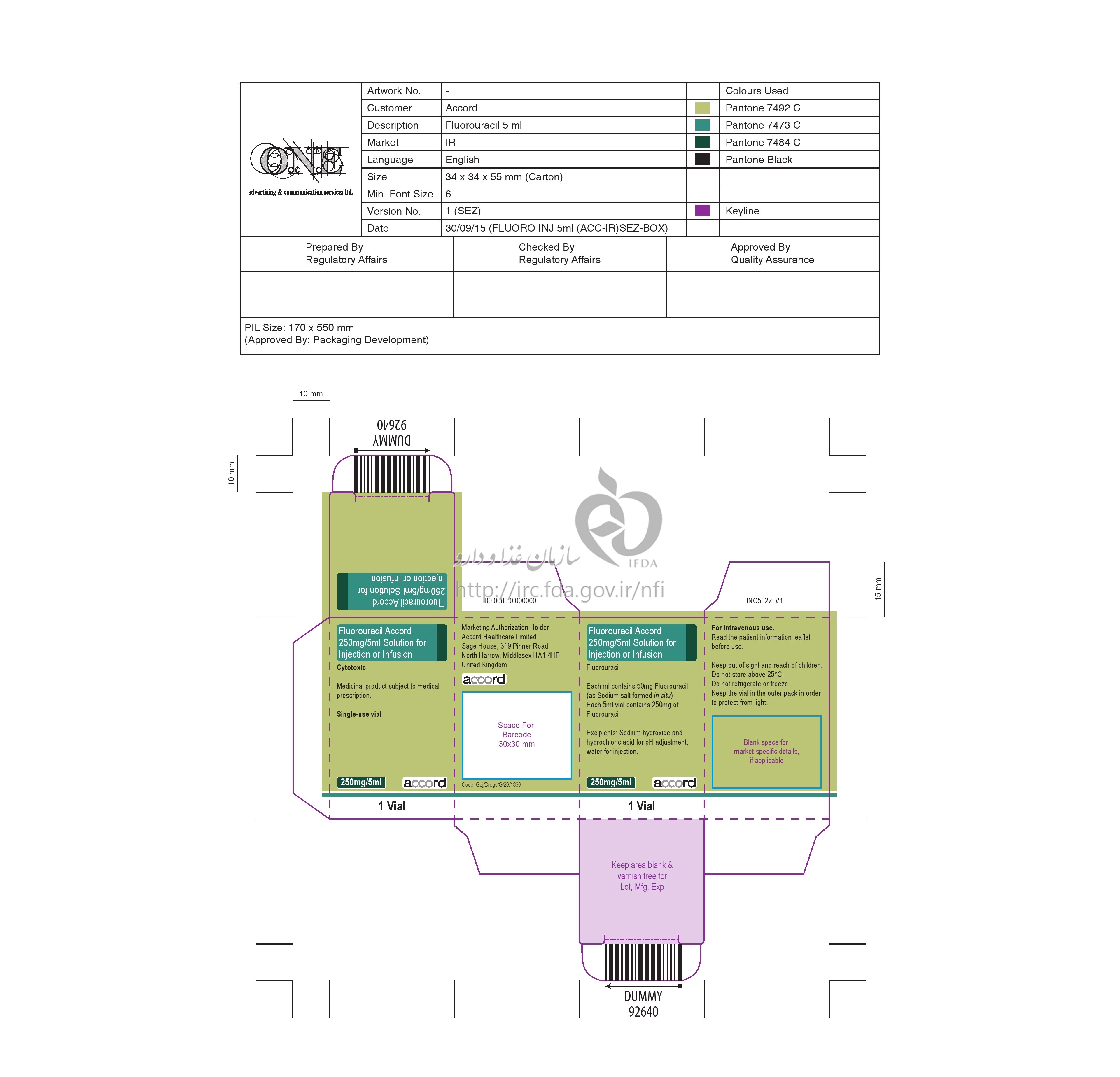 فلورواوراسیل آکورد تزریقی پرنترال 50 mg/1mL 5MILLILITER