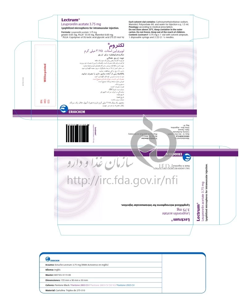 لکتروم پودر برای تهیه سوسپانسیون تزریقی پرنترال 3.75 mg