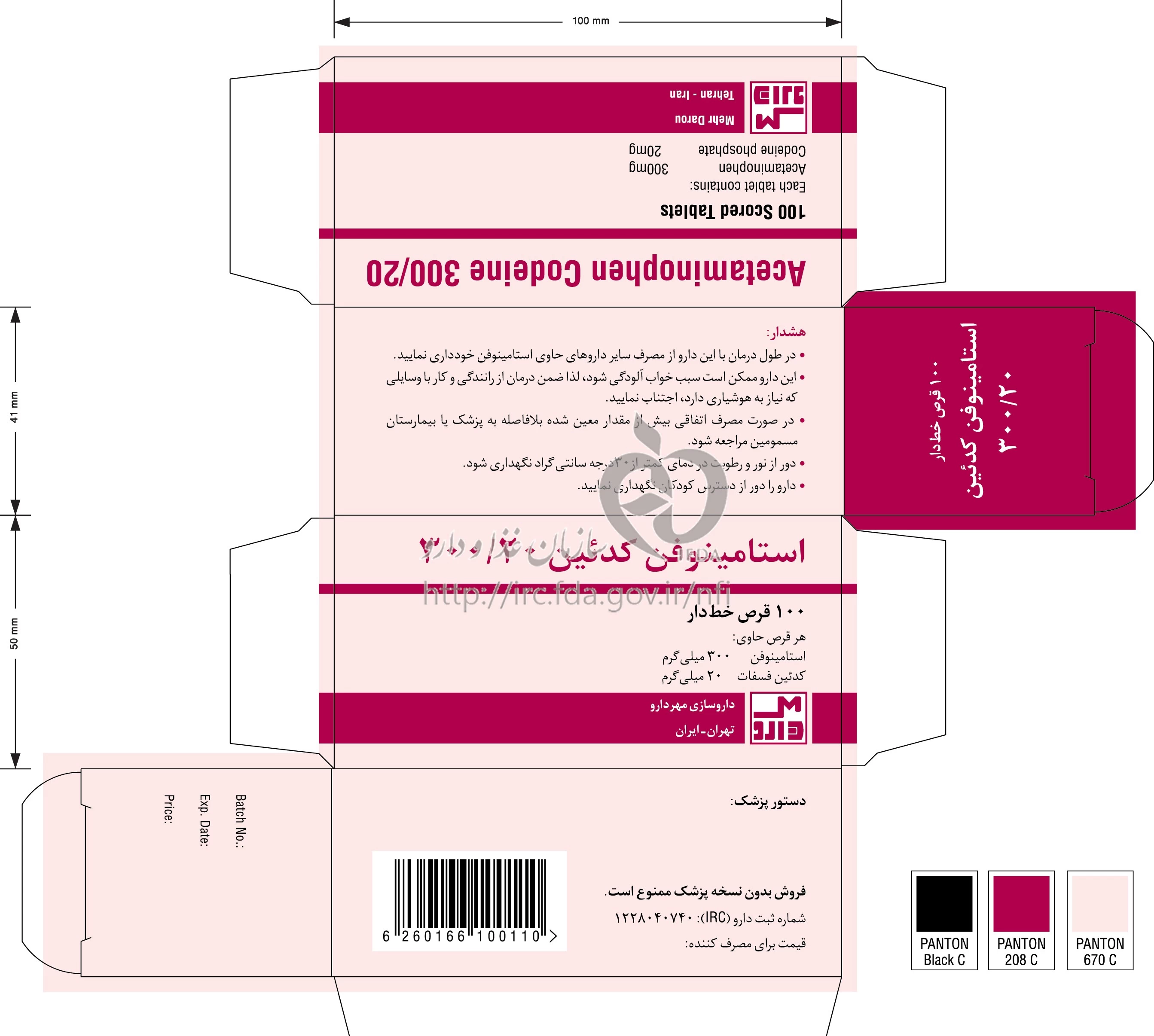 استامینوفن/کدئین قرص خوراکی 300 mg/20 mg