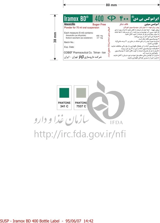ایراموکس بی دی پودر برای تهیه سوسپانسیون خوراکی 400 mg/5 mL 70MILLILITER