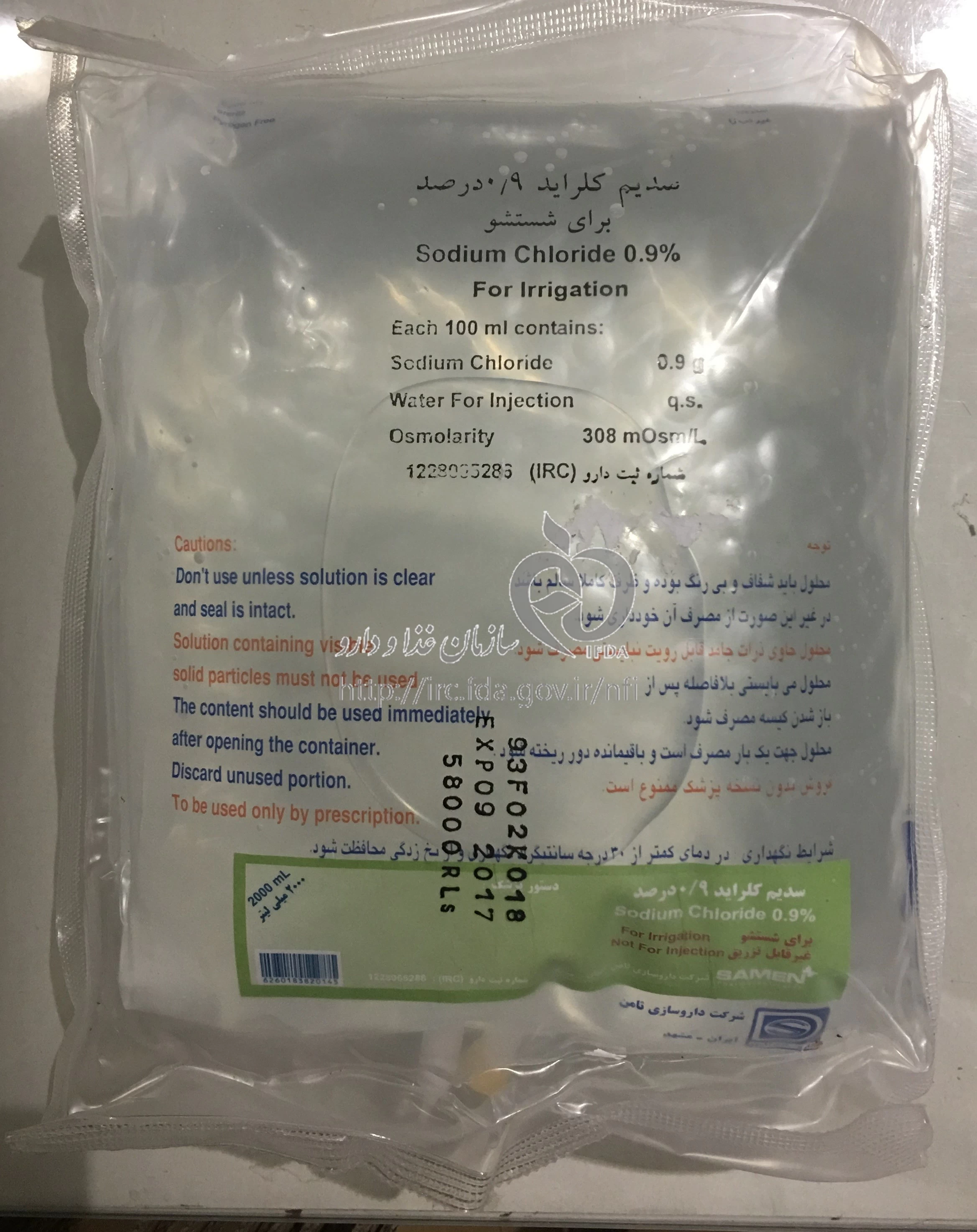 عوارض جانبی سدیم کلراید محلول جهت شستشو 0.9 % 2LITER