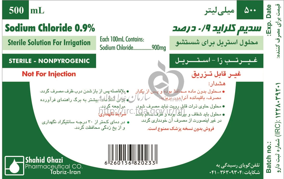 سدیم کلراید محلول جهت شستشو 0.9 % 500MILLILITER