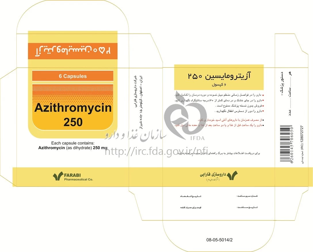 آزیترومایسین کپسول خوراکی 250 mg