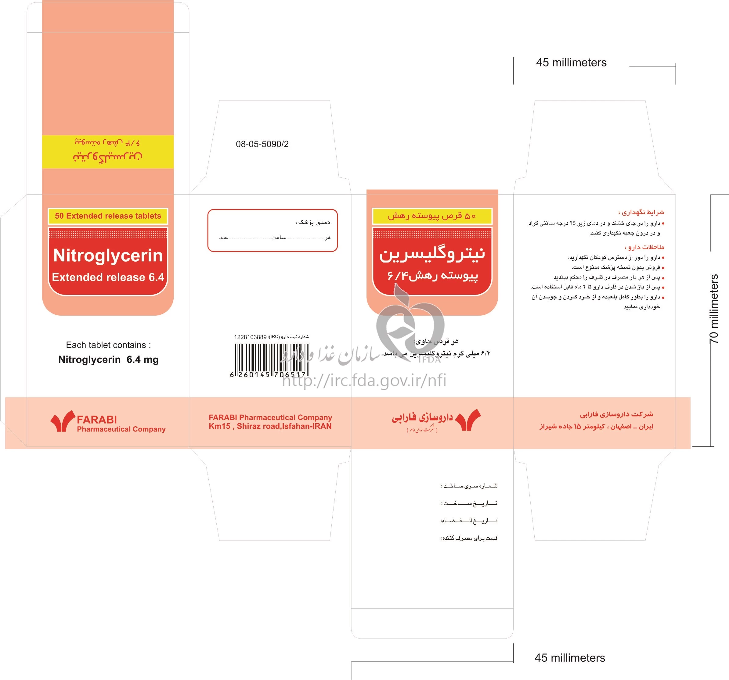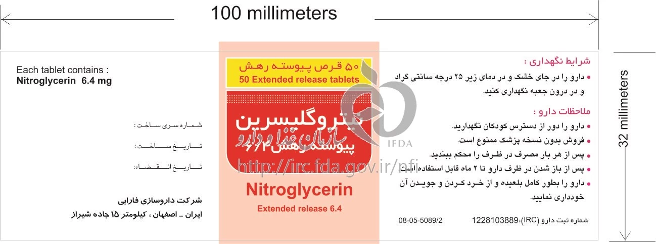 نیتروگلیسرین قرص پیوسته رهش خوراکی 6.4 mg