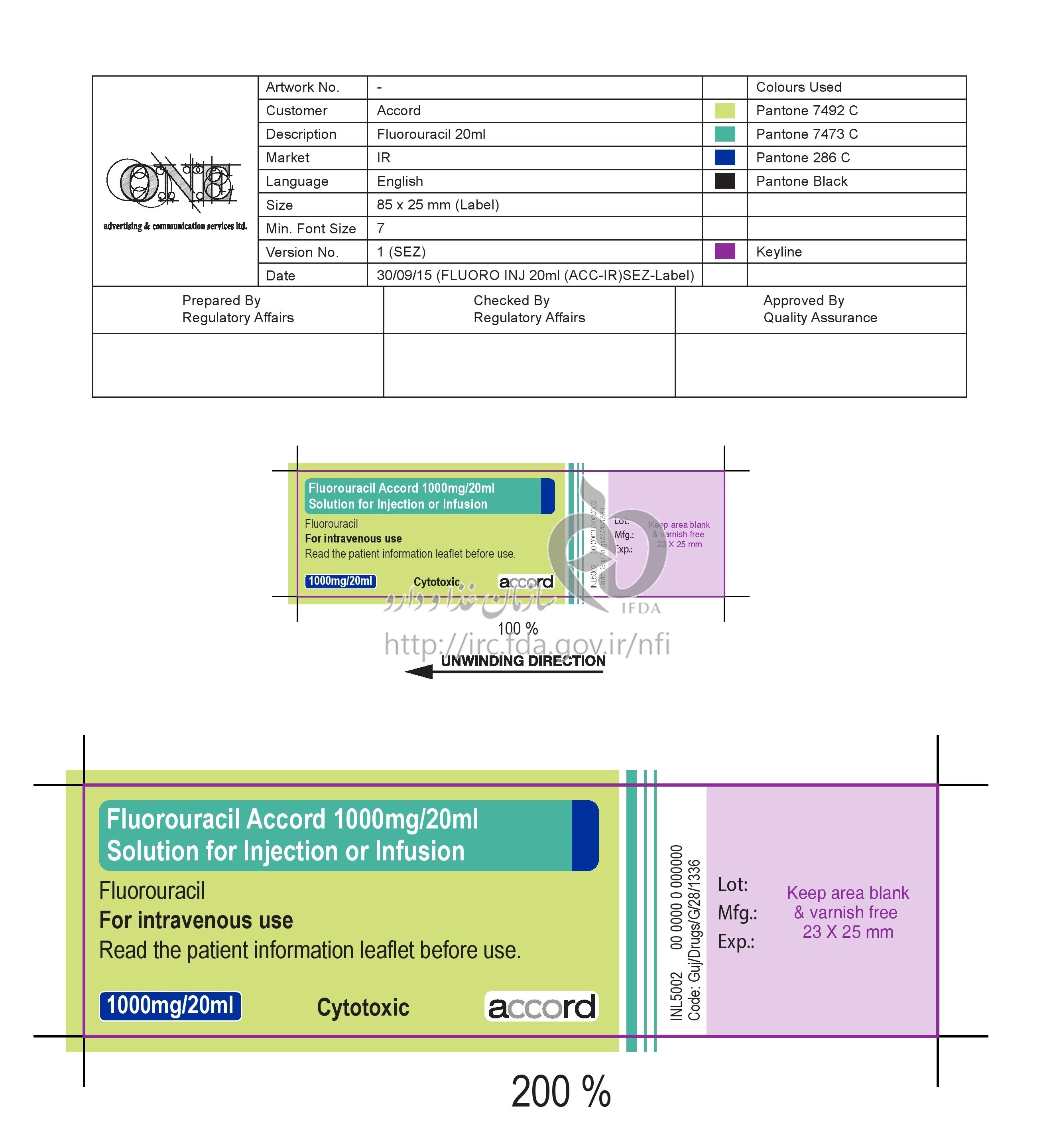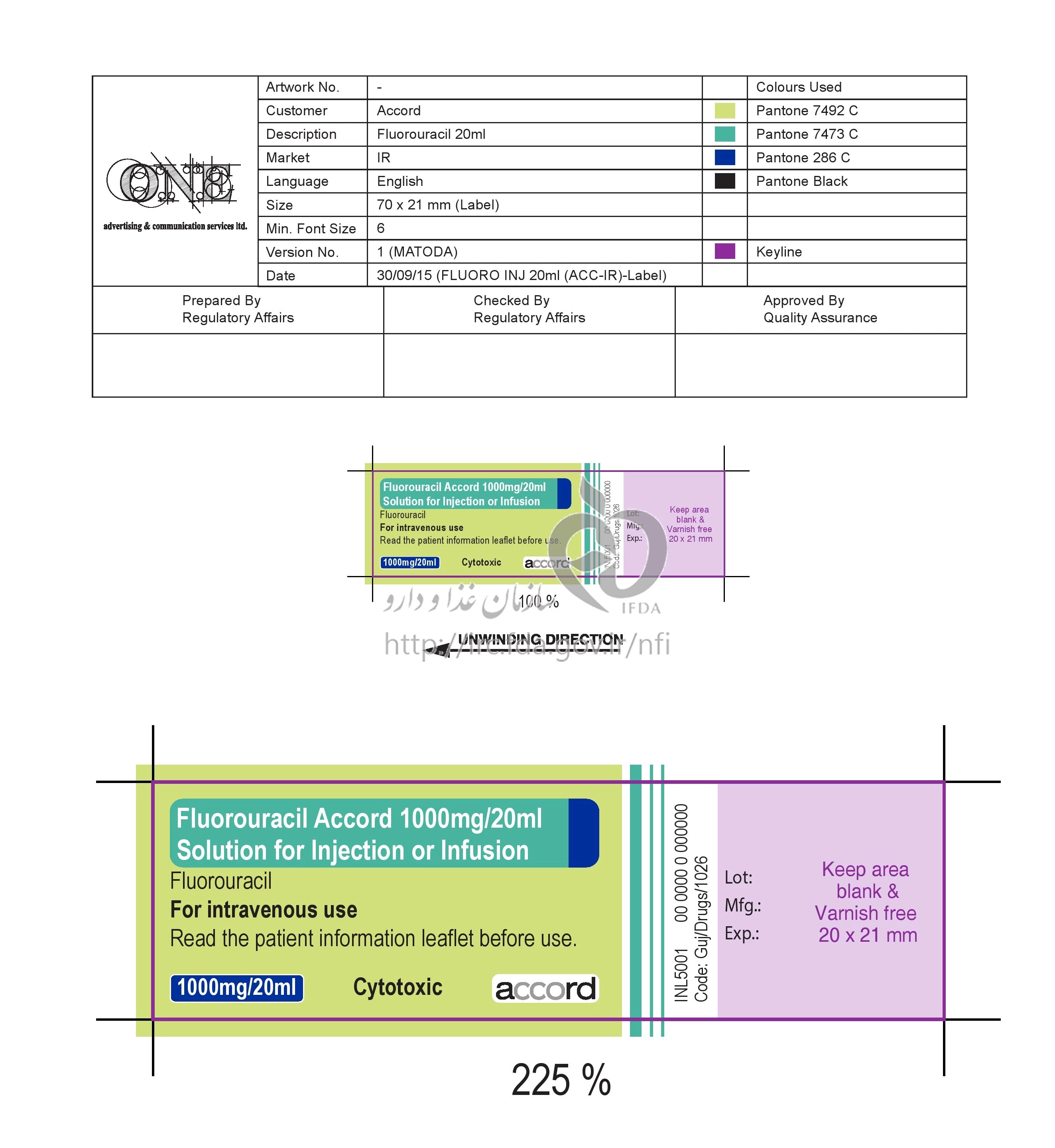 موارد مصرف فلورواوراسیل آکورد تزریقی پرنترال 50 mg/1mL 20MILLILITER