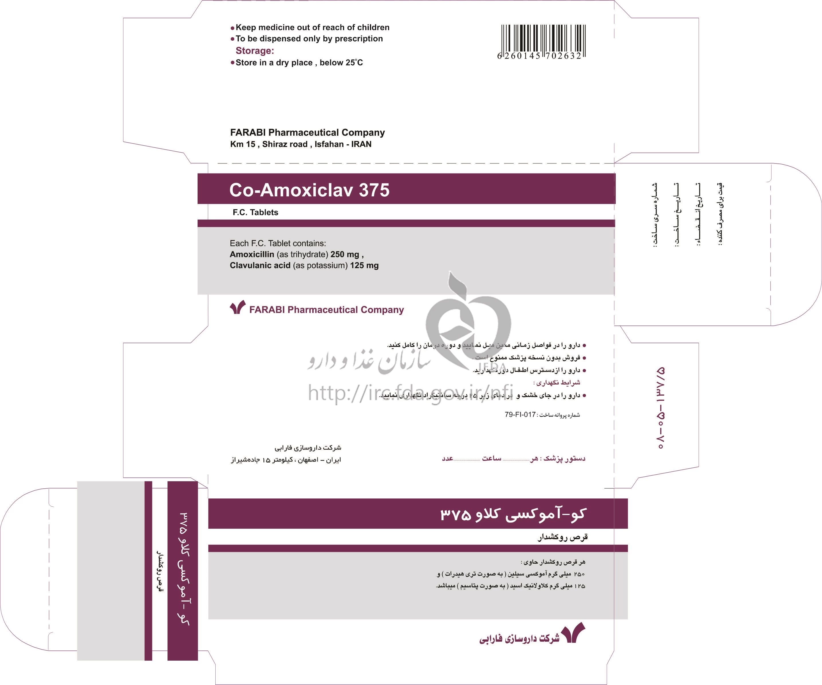 کو - آموکسی کلاو قرص خوراکی 250 mg/125 mg
