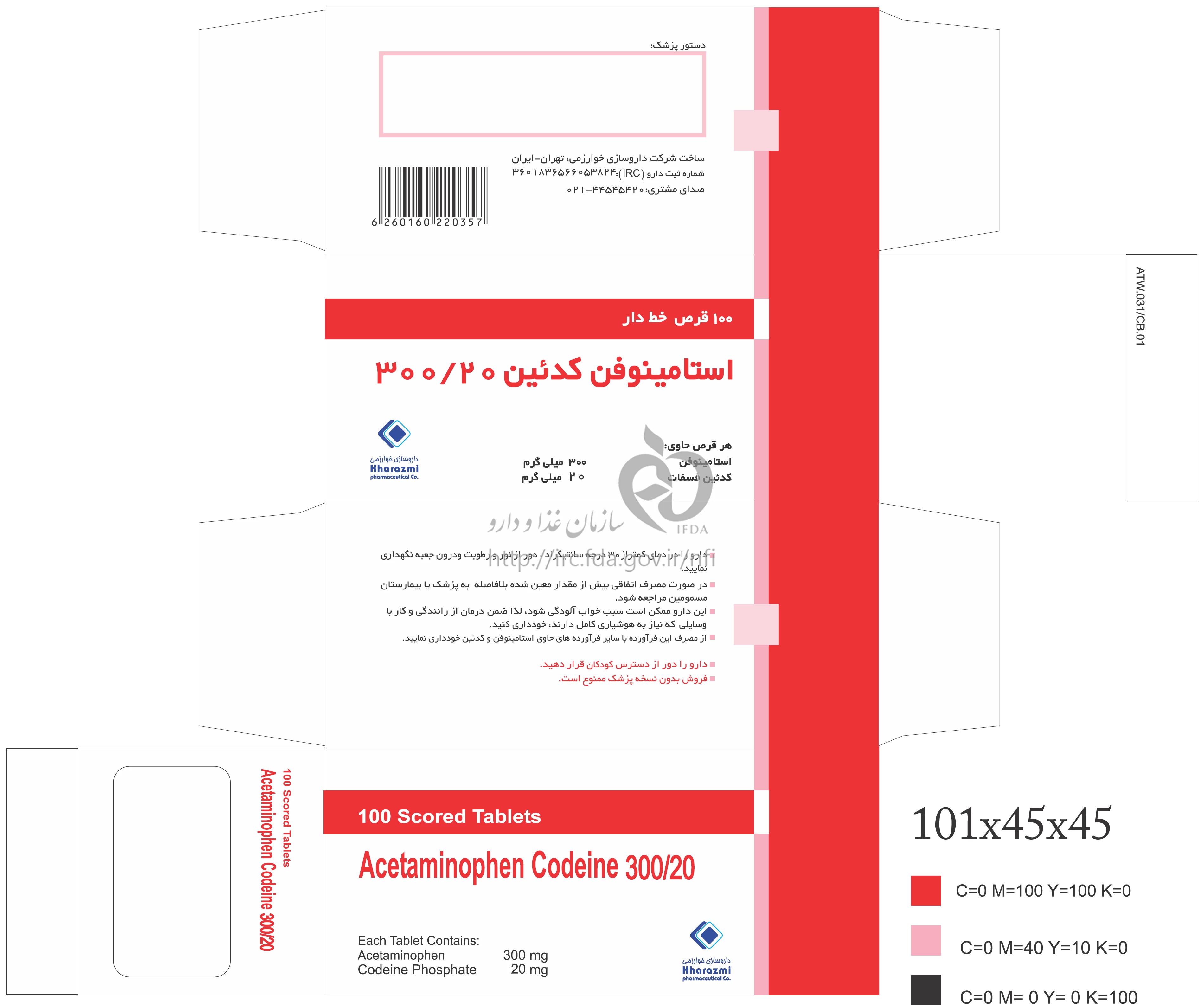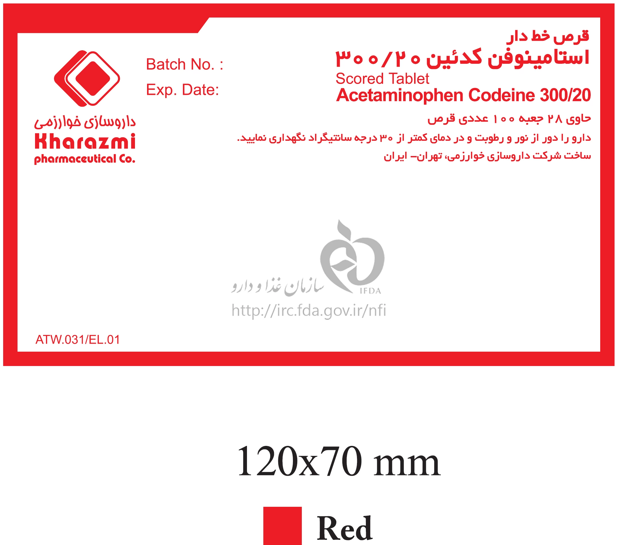 استامینوفن/کدئین قرص خوراکی 300 mg/20 mg