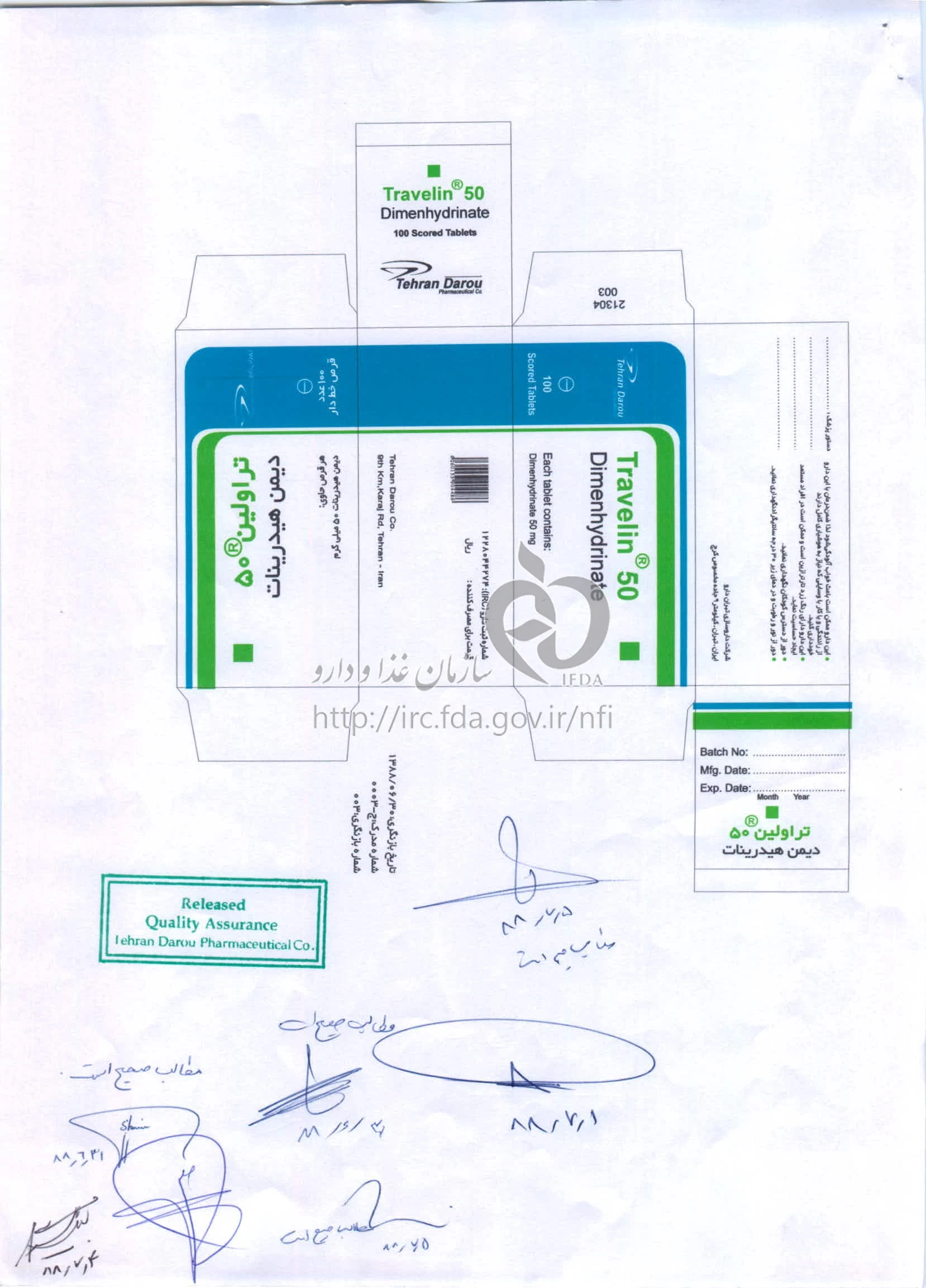 تداخل های دارویی تراولین قرص خوراکی 50 mg