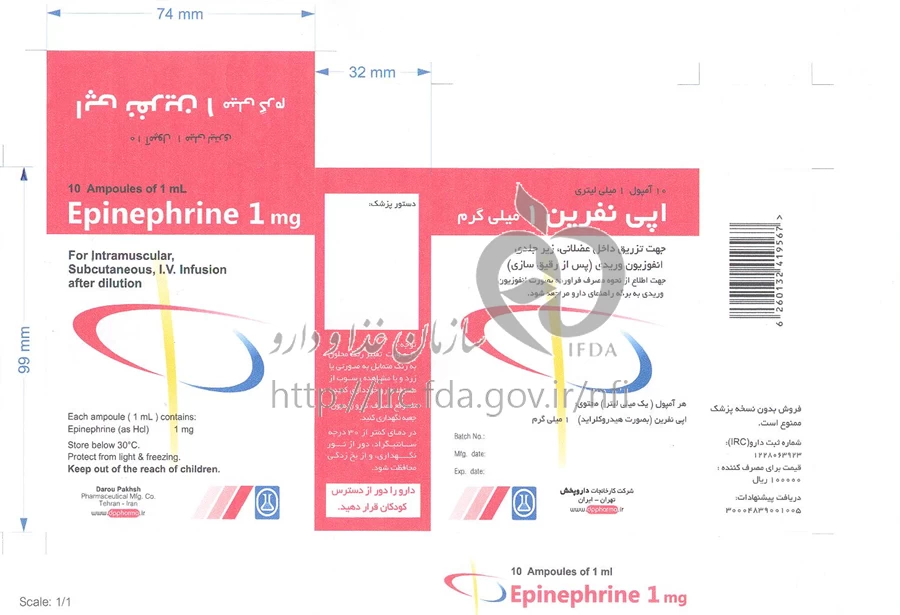 اپی نفرین تزریقی پرنترال 1 mg/1mL 1MILLILITER
