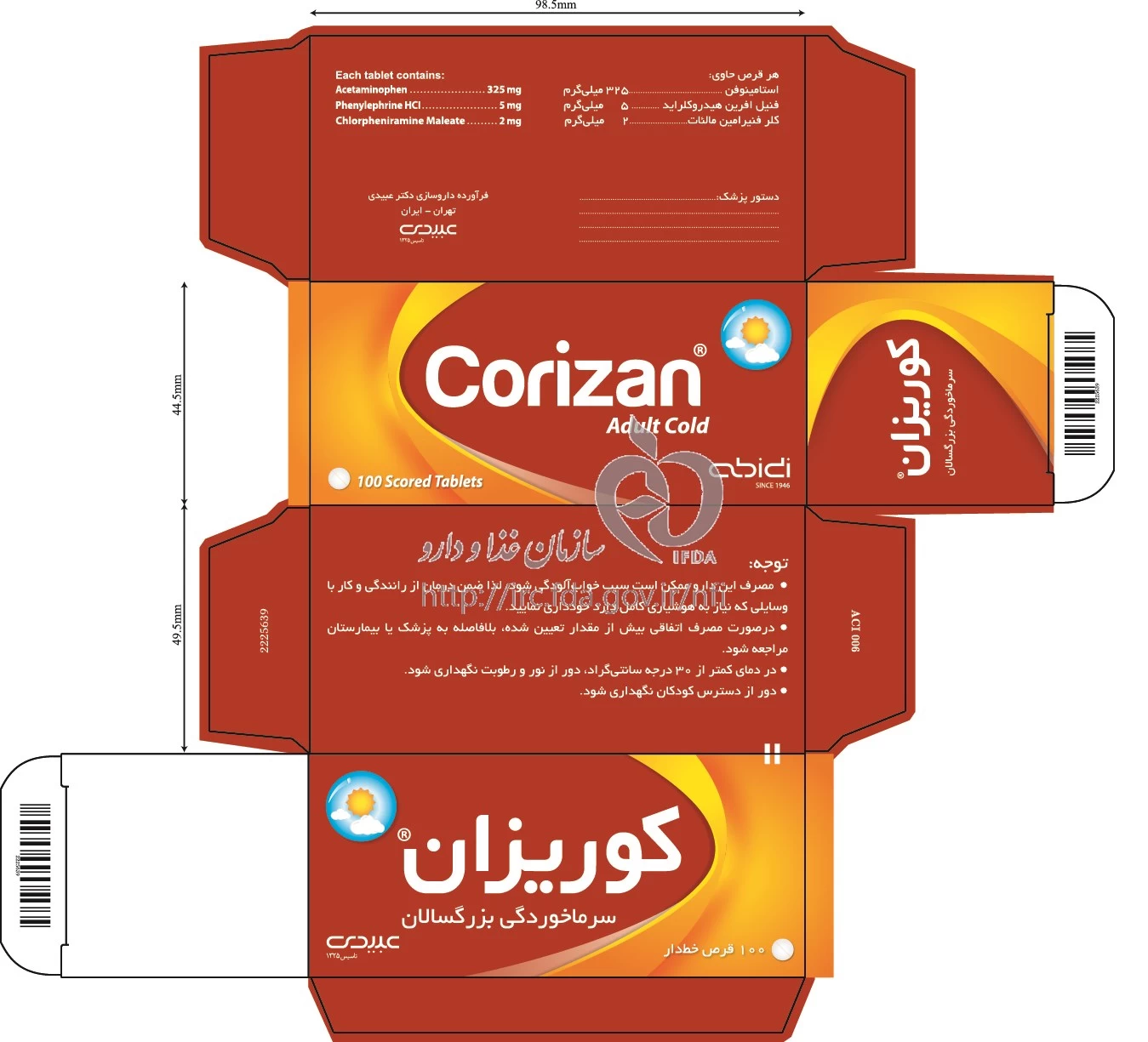 کوریزان قرص خوراکی 325 mg/5 mg/2 mg