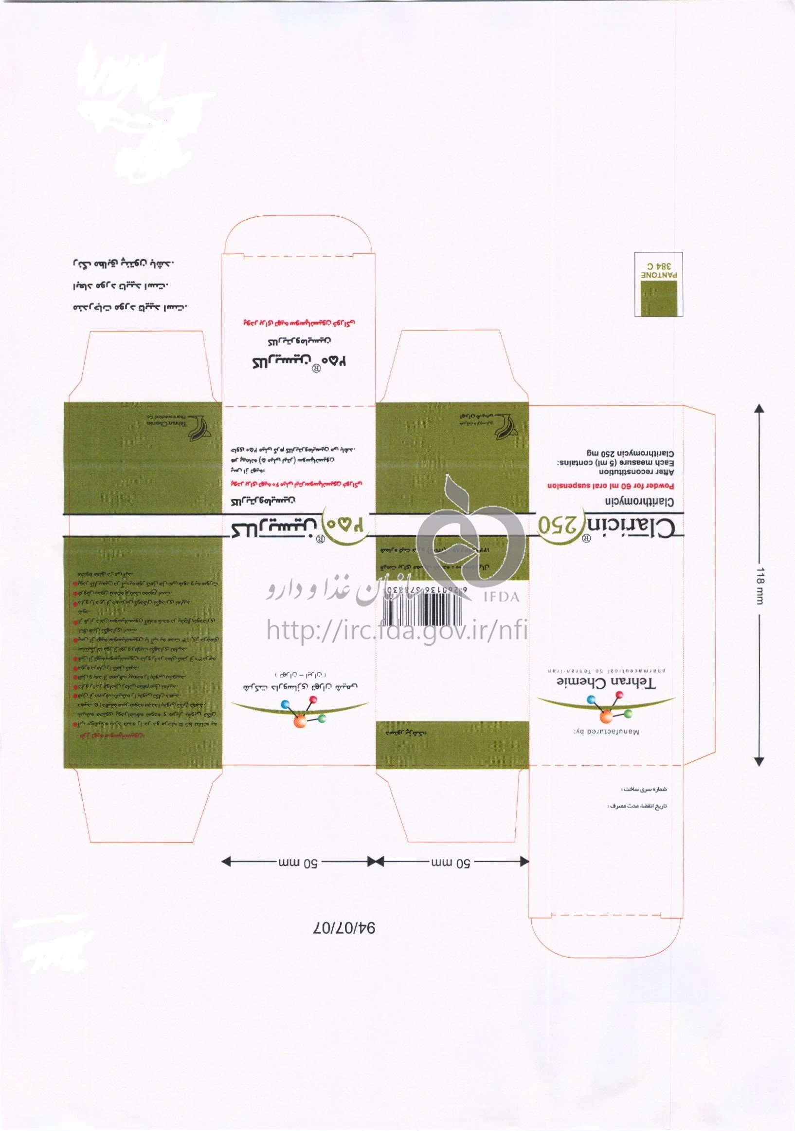 کلاریسین پودر برای تهیه سوسپانسیون خوراکی 250 mg/5 mL 60MILLILITER