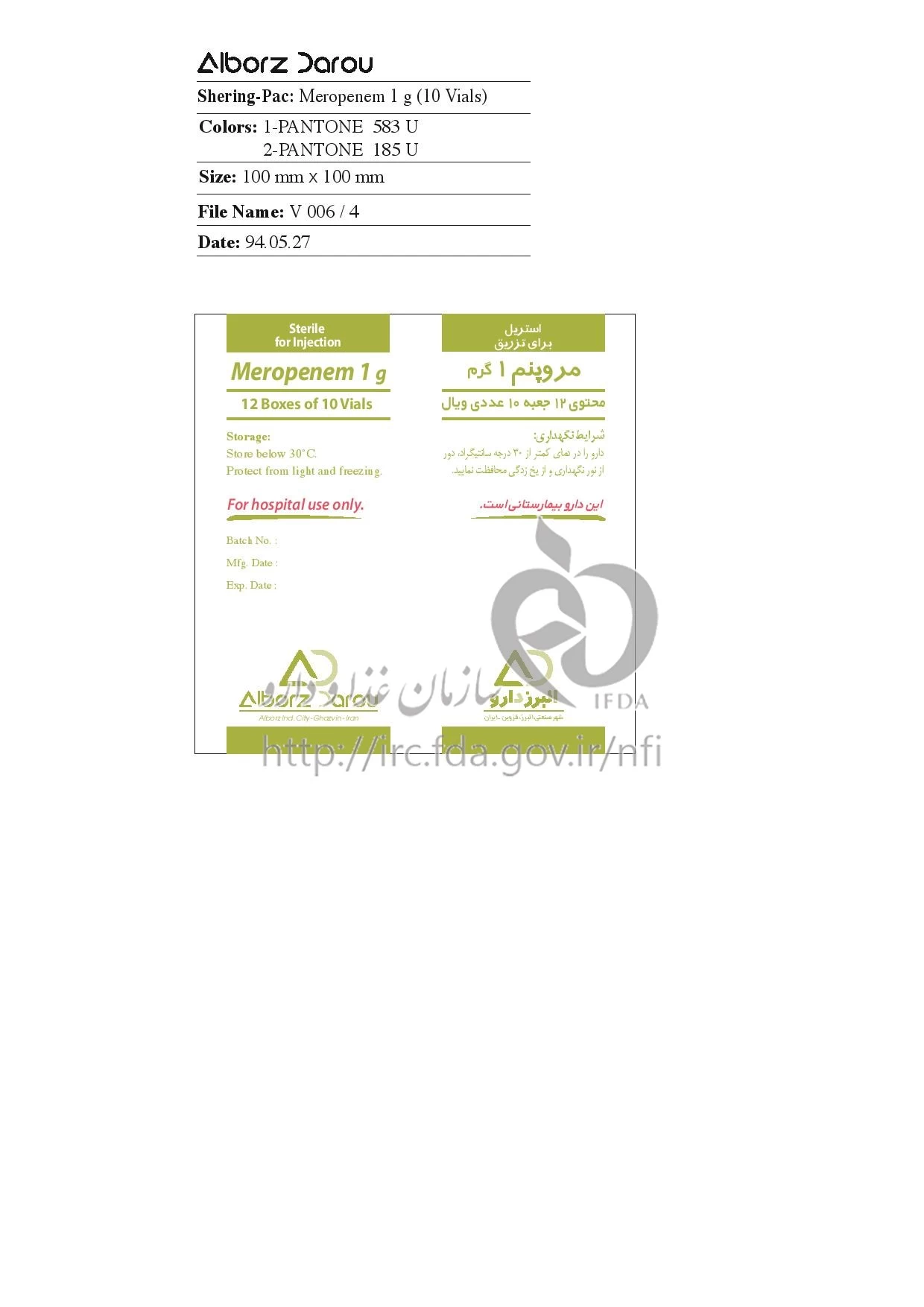 MEROPENEM INJECTION, POWDER, FOR SOLUTION PARENTERAL 1 g