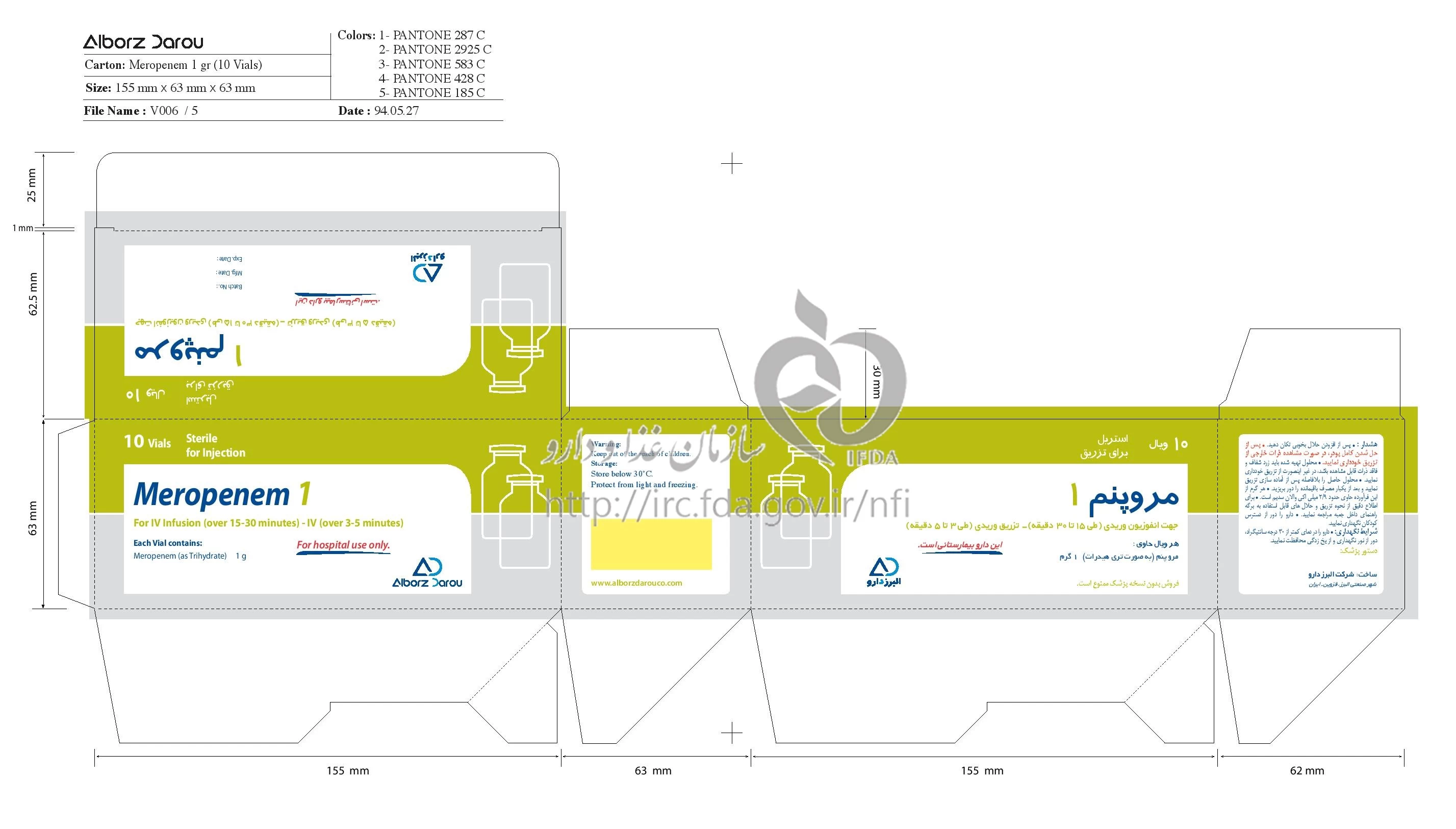 مروپنم پودر برای تهیه محلول تزریقی پرنترال 1 g