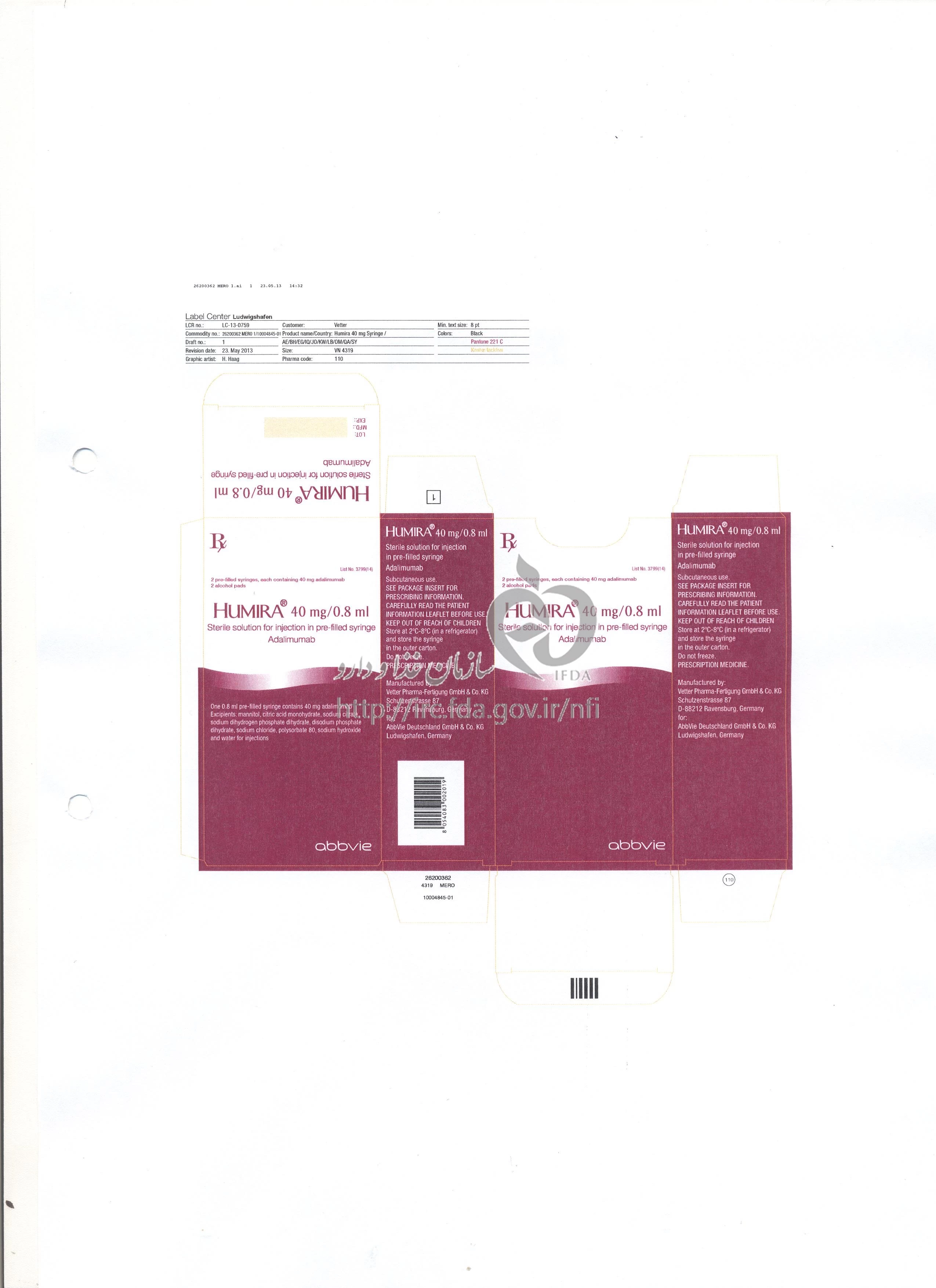 هیومیرا محلول تزریقی پرنترال 50 mg/1mL 0.8MILLILITER