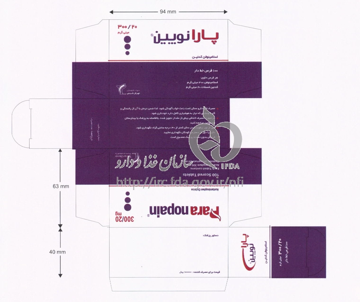 پارانوپین قرص خوراکی 300 mg/20 mg