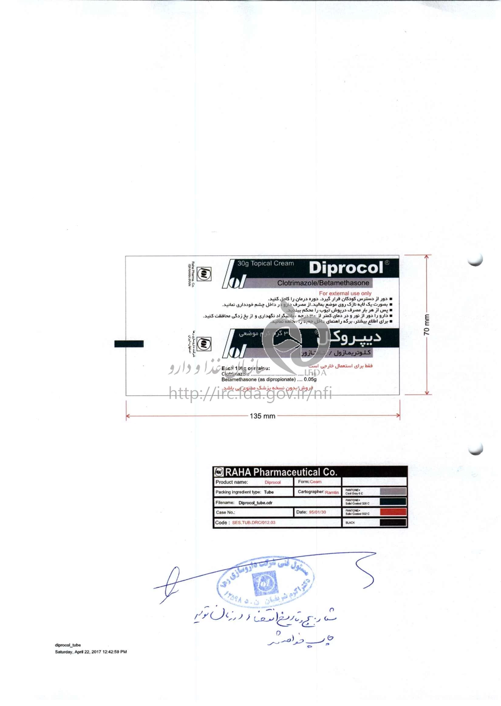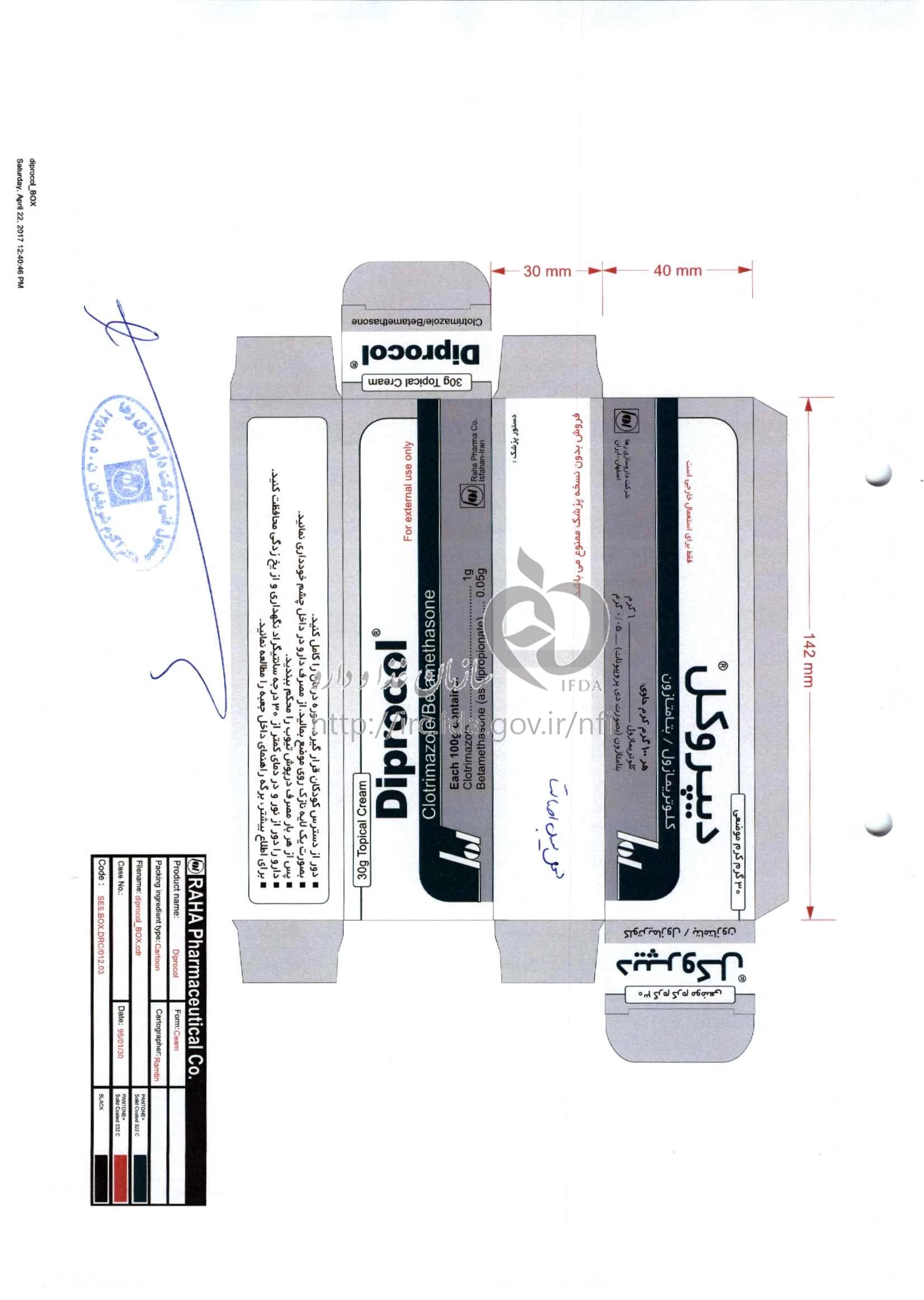 دیپروکل کرم موضعی 1 %/0.05 % 30GRAM