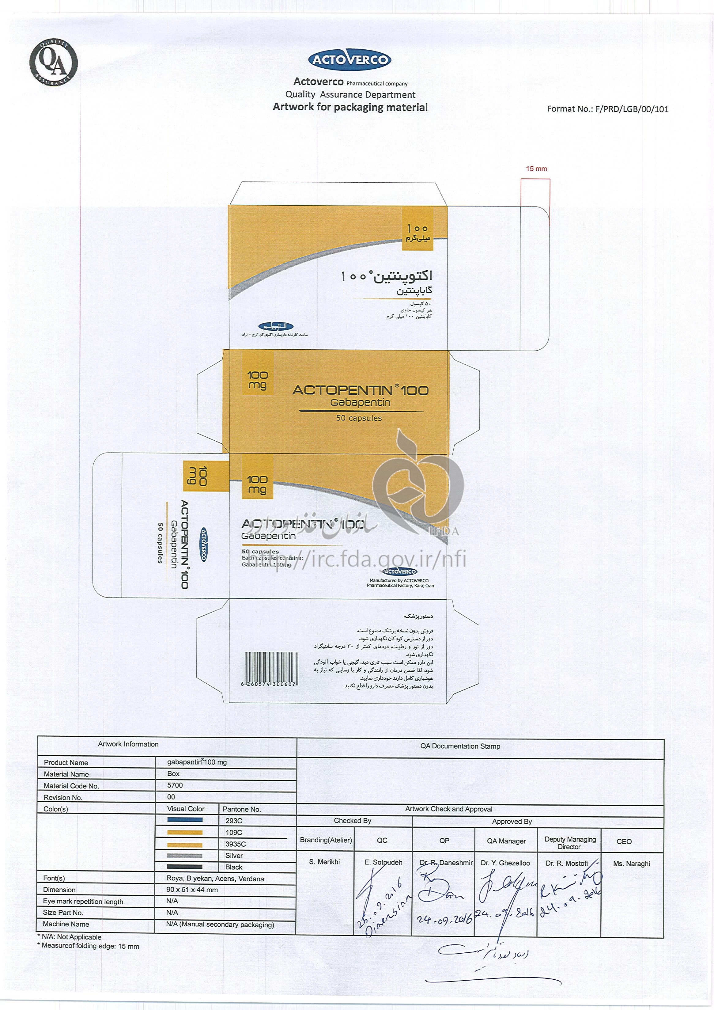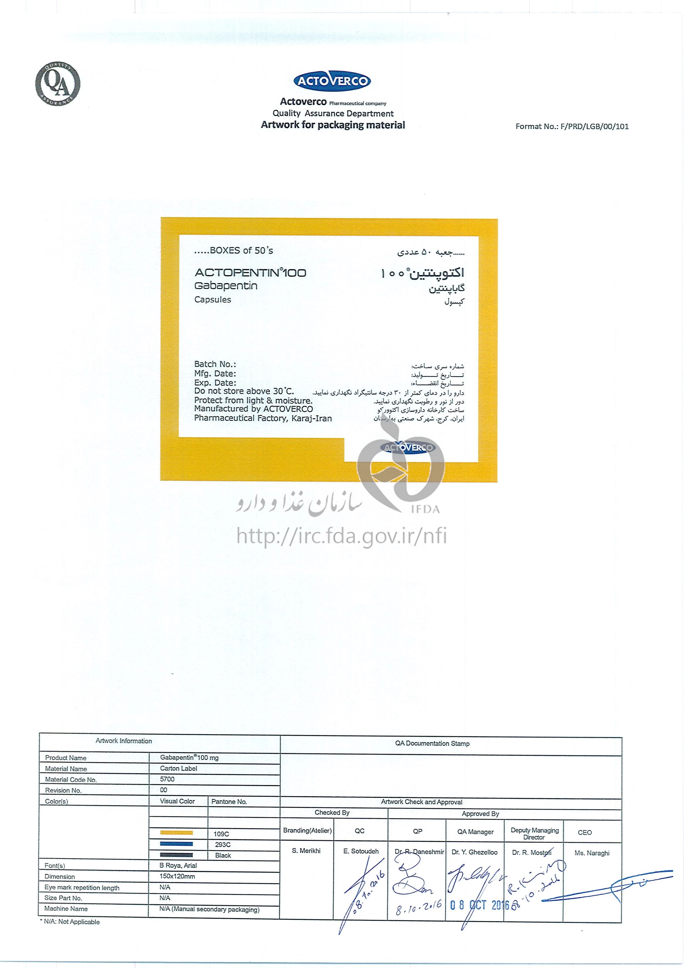 تداخل های دارویی اکتوپنتین کپسول خوراکی 100 mg