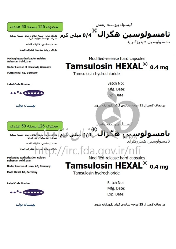تامسولوسین هگزال کپسول پیوسته رهش خوراکی 0.4 mg