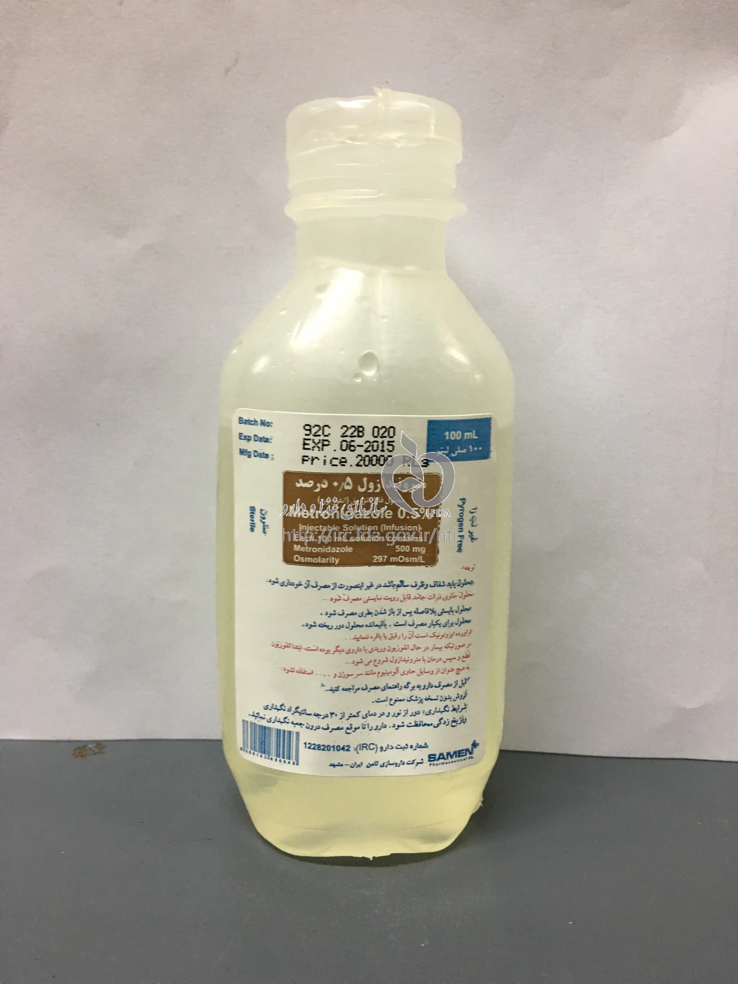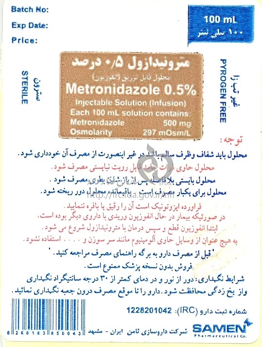 دکترها مترونیدازول محلول تزریقی پرنترال 5 mg/1mL 100MILLILITER
