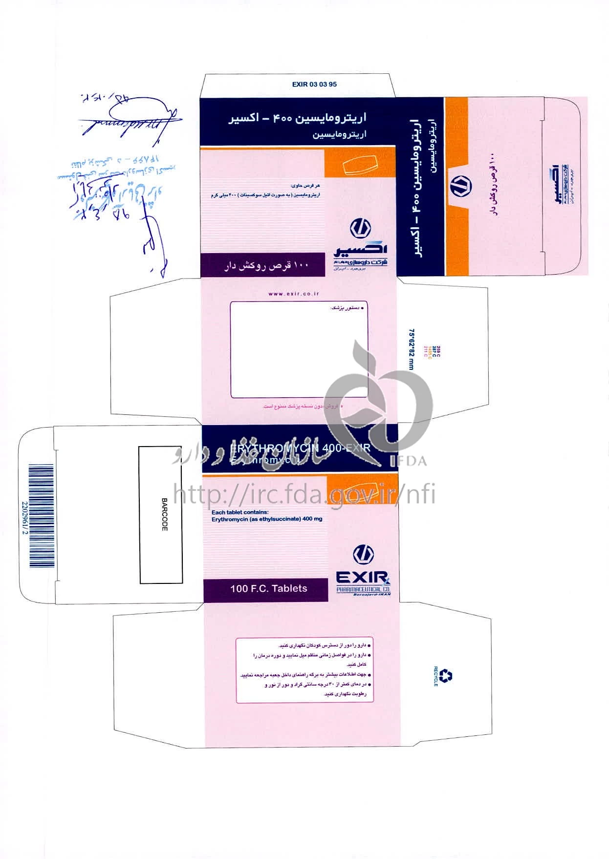 اریترومایسین - اکسیر قرص خوراکی 400 mg