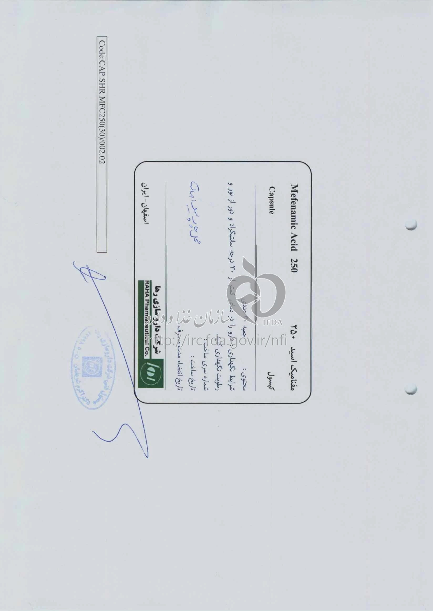 مفنامیک اسید کپسول خوراکی 250 mg