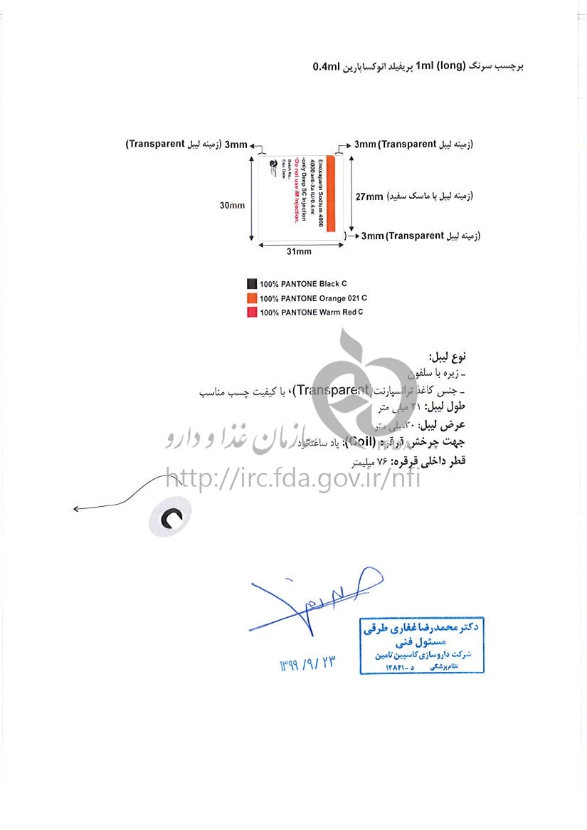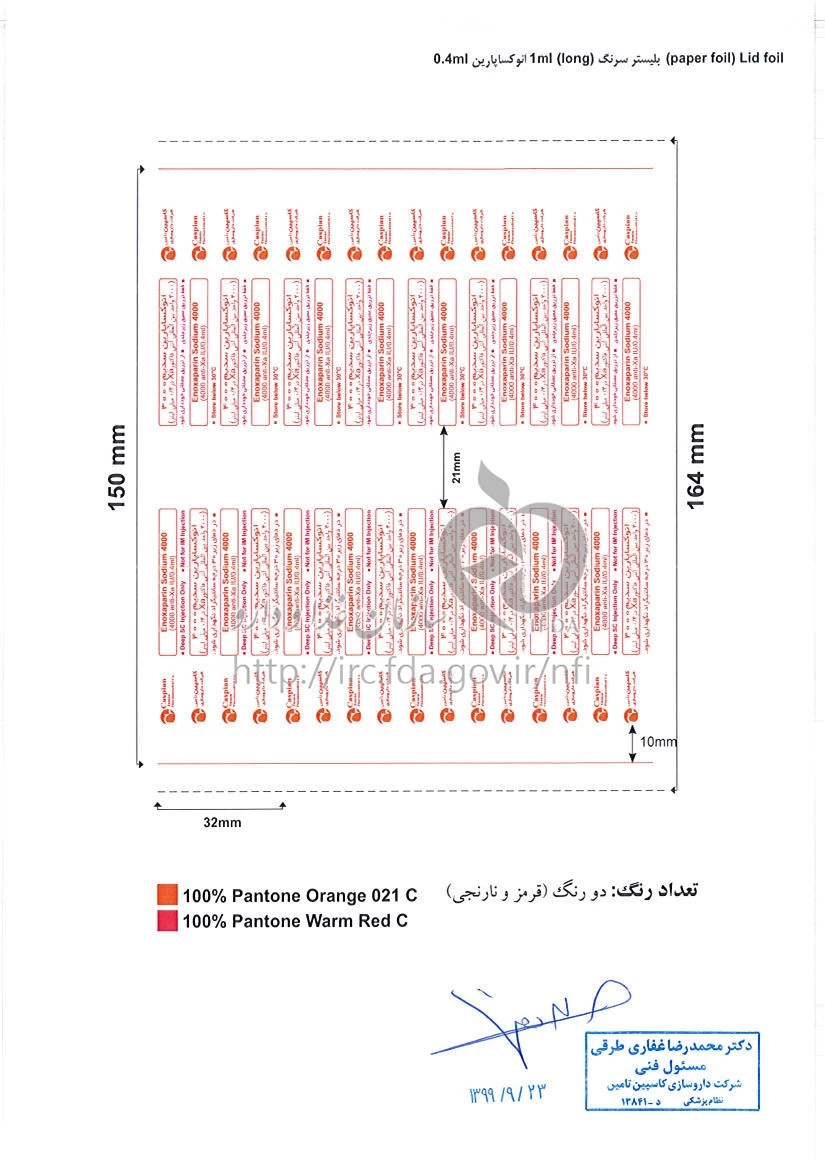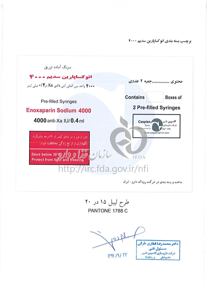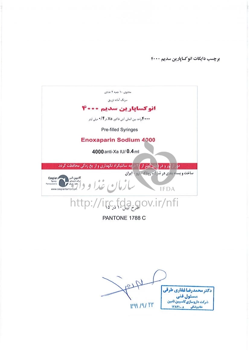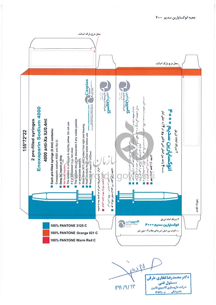 انوکساپارین تزریقی پرنترال 100 mg/1mL 0.4MILLILITER
