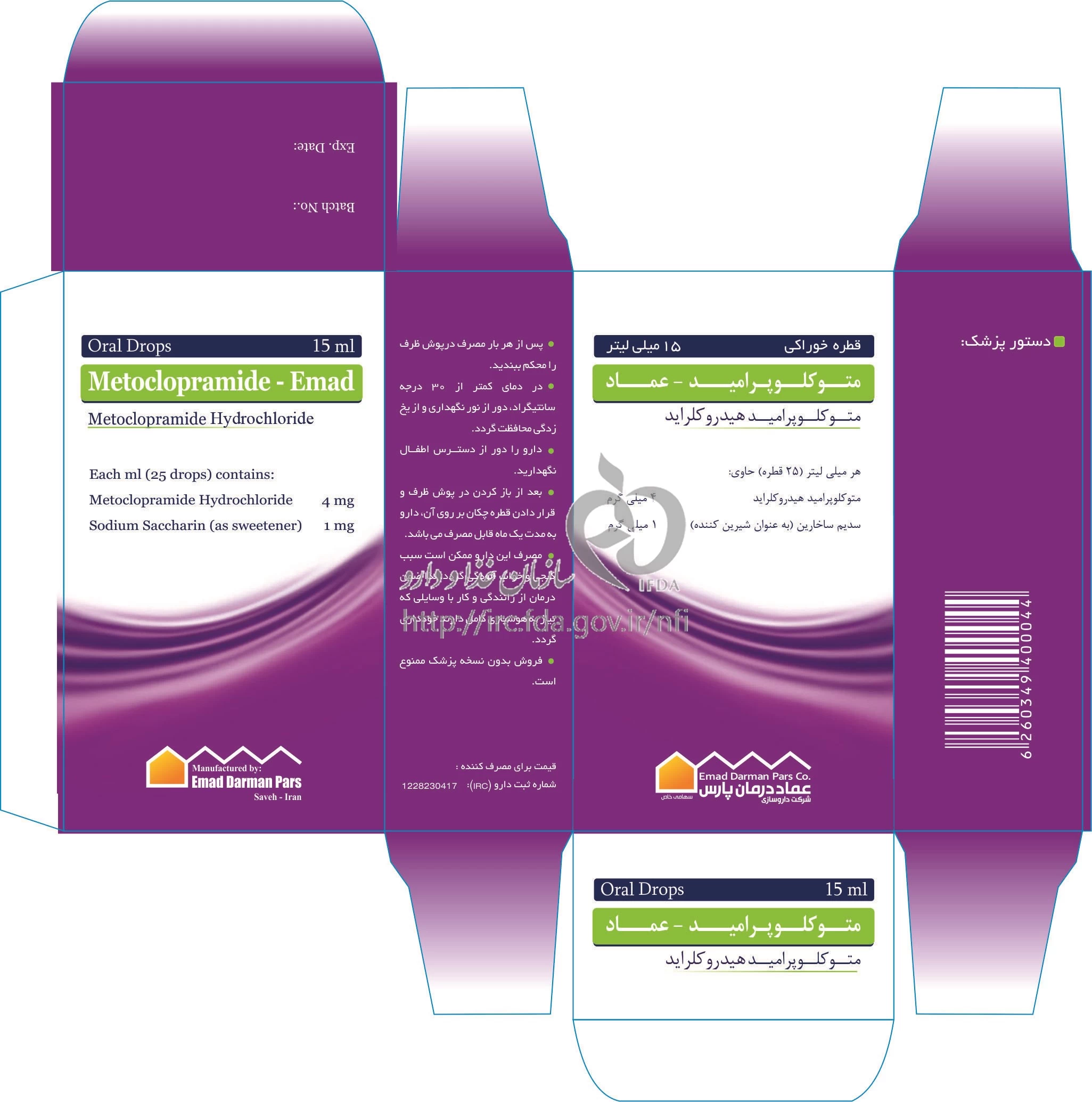 لیست پادکست ها متوکلوپرامید - عماد محلول ، قطره خوراکی 4 mg/1mL 15MILLILITER