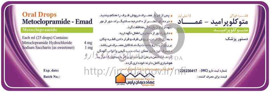 دکترها متوکلوپرامید - عماد محلول ، قطره خوراکی 4 mg/1mL 15MILLILITER