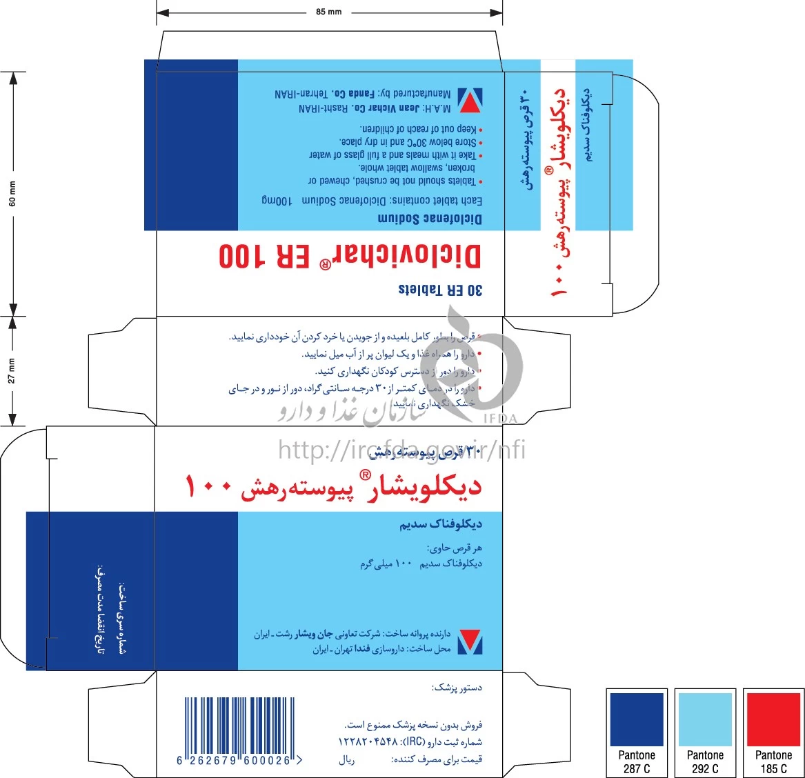 دیکلوویشار قرص پیوسته رهش خوراکی 100 mg