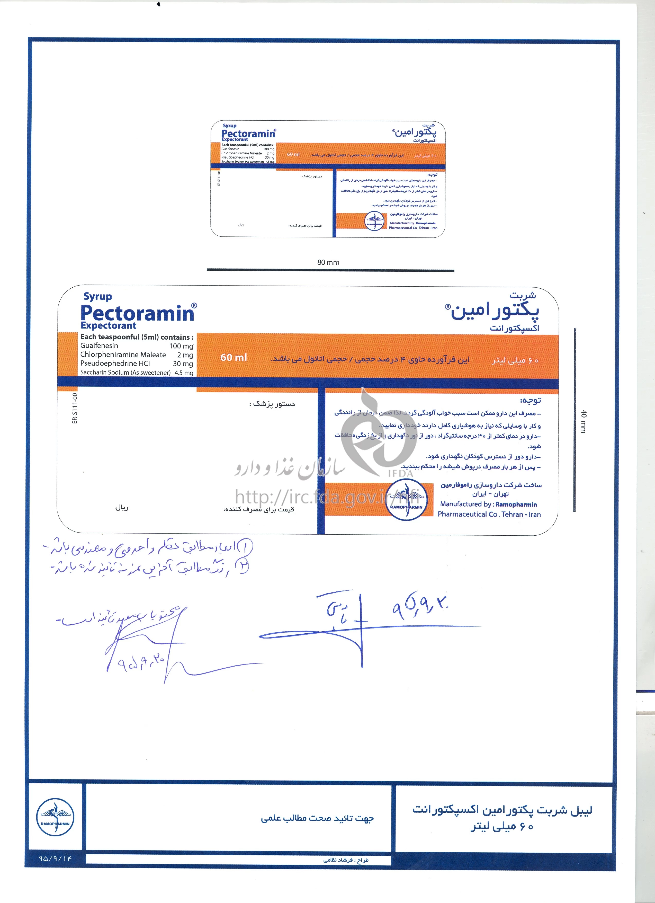 دکترها پکتورامین شربت خوراکی 100 mg/2 mg/30 mg/5mL 60MILLILITER