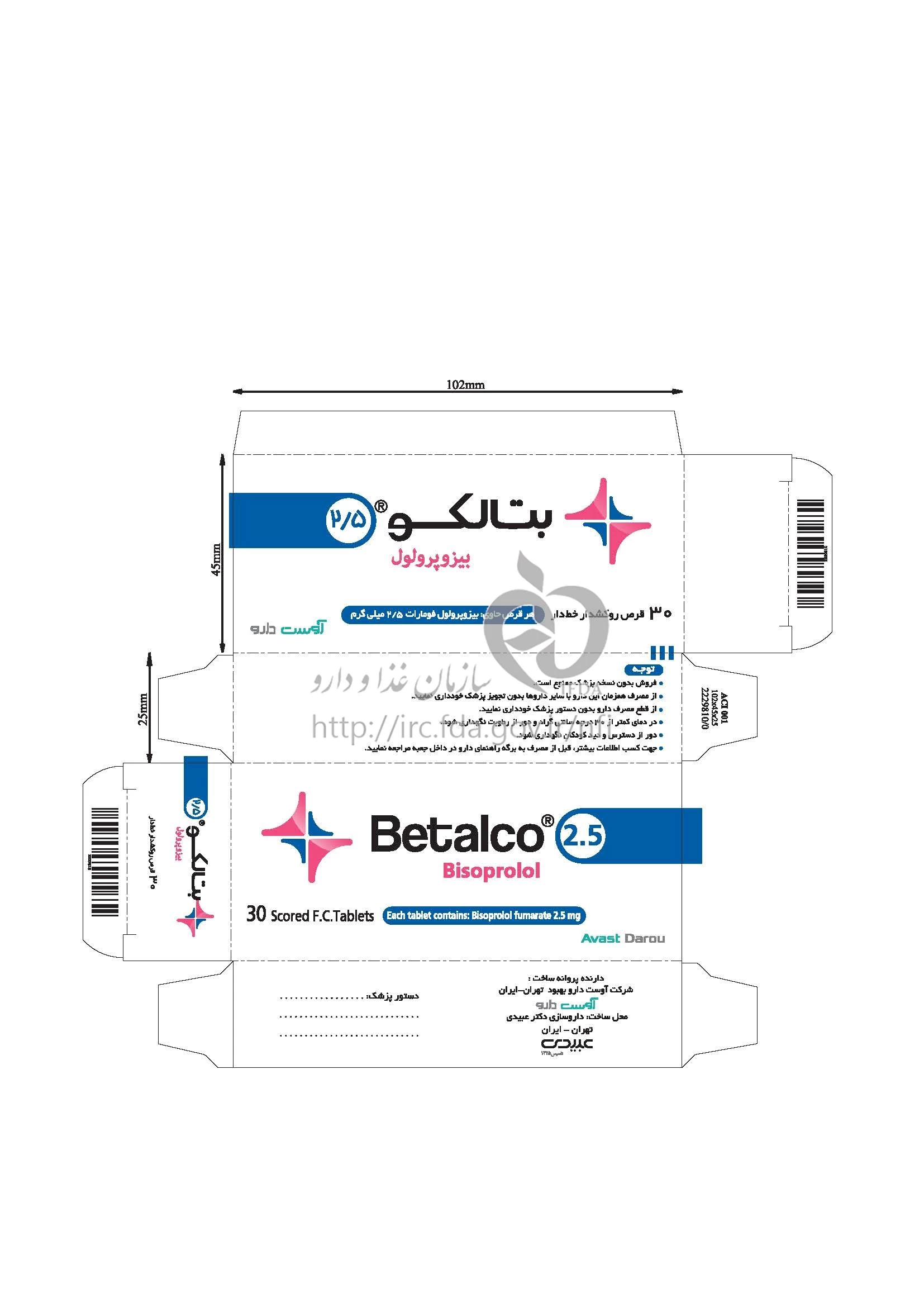 موارد مصرف ، عوارض جانبی ، مصرف بارداری و تداخلات دارویی بتالکو قرص خوراکی 2.5 mg