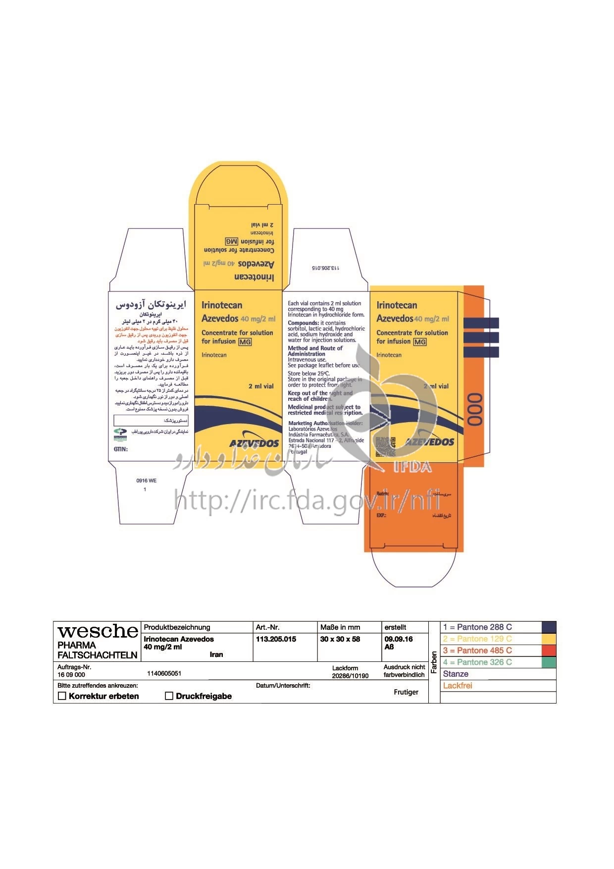 ایرینوتکان - آزودوس تزریقی پرنترال 20 mg/1mL 2MILLILITER